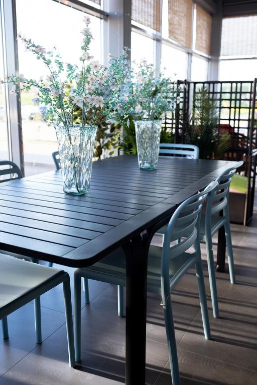 Очень низкий коэффициент теплопроводности материала позволяет продукции долго оставаться на солнце без поглощения тепла. Для того чтобы восстановить прежнее состояние мебели после использования на открытом воздухе, достаточно протереть ее губкой с водой и нейтральным средством, не используя абразивные чистящие средства, растворители и хлорсодержащие вещества. Материал пластиковой мебели Nardi экологически чистый.