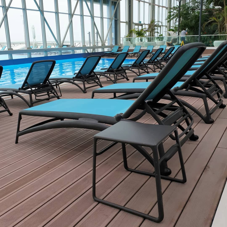 Очень низкий коэффициент теплопроводности материала позволяет продукции долго оставаться на солнце без поглощения тепла. Для того чтобы восстановить прежнее состояние мебели после использования на открытом воздухе, достаточно протереть ее губкой с водой и нейтральным средством, не используя абразивные чистящие средства, растворители и хлорсодержащие вещества. Материал пластиковой мебели Nardi экологически чистый.