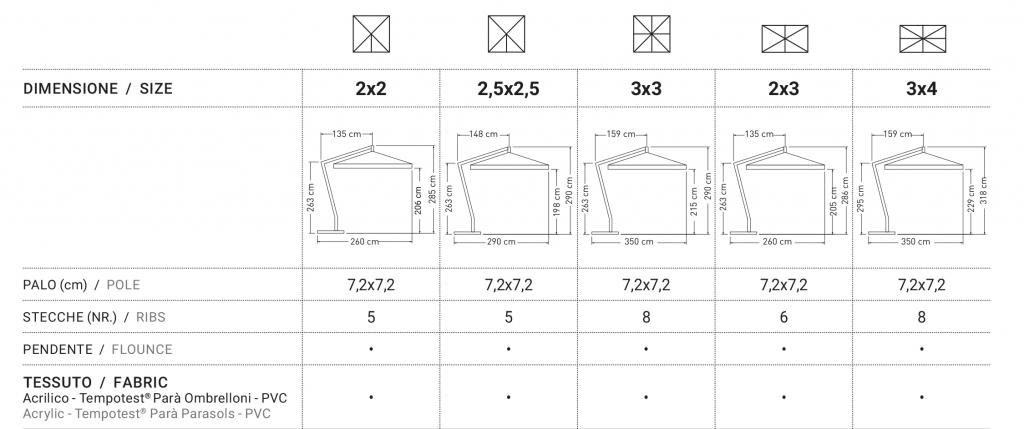 Широкий ассортимент продукции варьируется от классических и вневременных зонтиков с центральным полюсом до моделей с боковым рычагом (с 1, 2 или 4 рычагами) до телескопических гигантов.