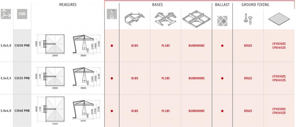 Широкий ассортимент товаров предназначен для контрактной, садовой мебели и рекламной индустрии и состоит из деревянных и алюминиевых зонтиков с центральным полюсом, боковым полюсом и телескопической рамой.