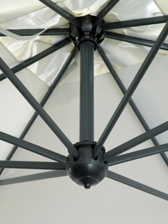 Широкий ассортимент товаров предназначен для контрактной, садовой мебели и рекламной индустрии и состоит из деревянных и алюминиевых зонтиков с центральным полюсом, боковым полюсом и телескопической рамой.