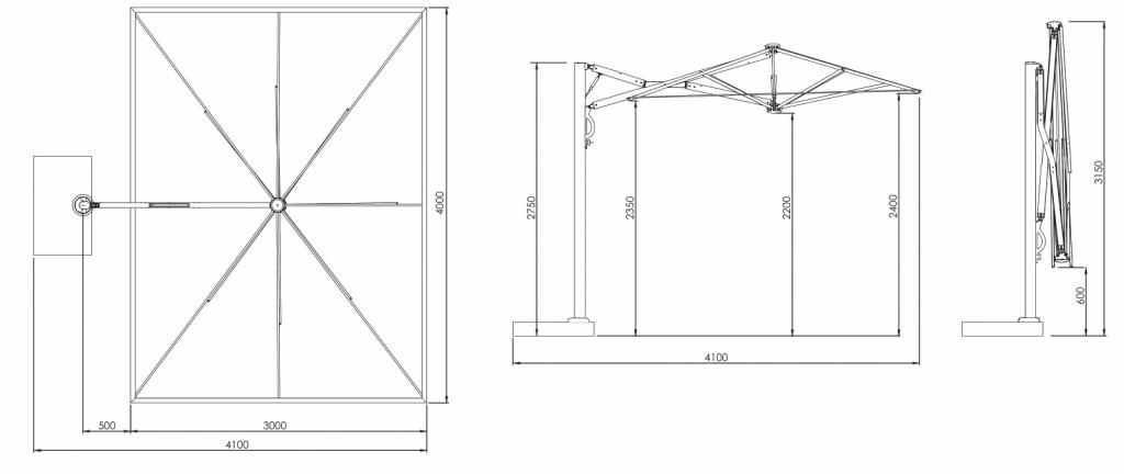 Широкий ассортимент товаров предназначен для контрактной, садовой мебели и рекламной индустрии и состоит из деревянных и алюминиевых зонтиков с центральным полюсом, боковым полюсом и телескопической рамой.