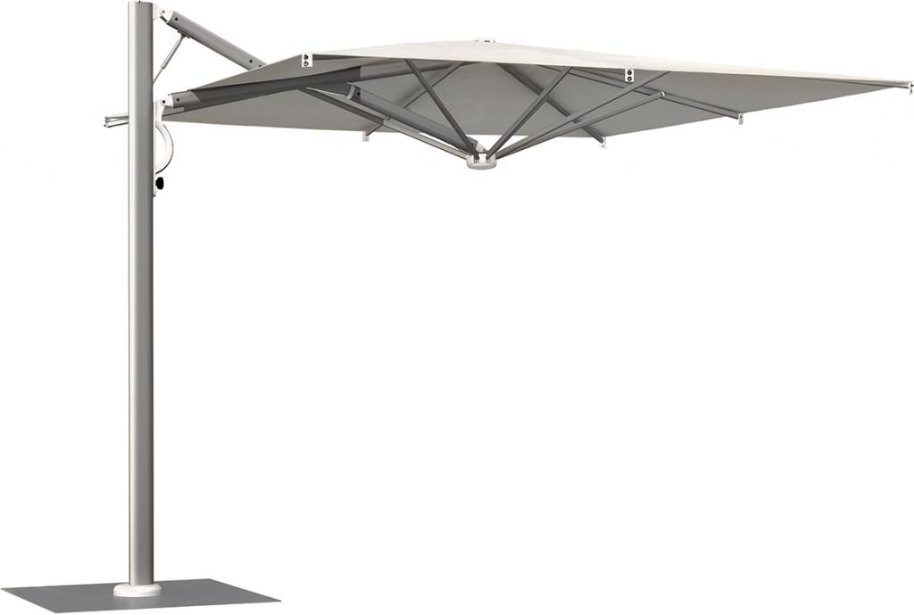Широкий ассортимент товаров предназначен для контрактной, садовой мебели и рекламной индустрии и состоит из деревянных и алюминиевых зонтиков с центральным полюсом, боковым полюсом и телескопической рамой.