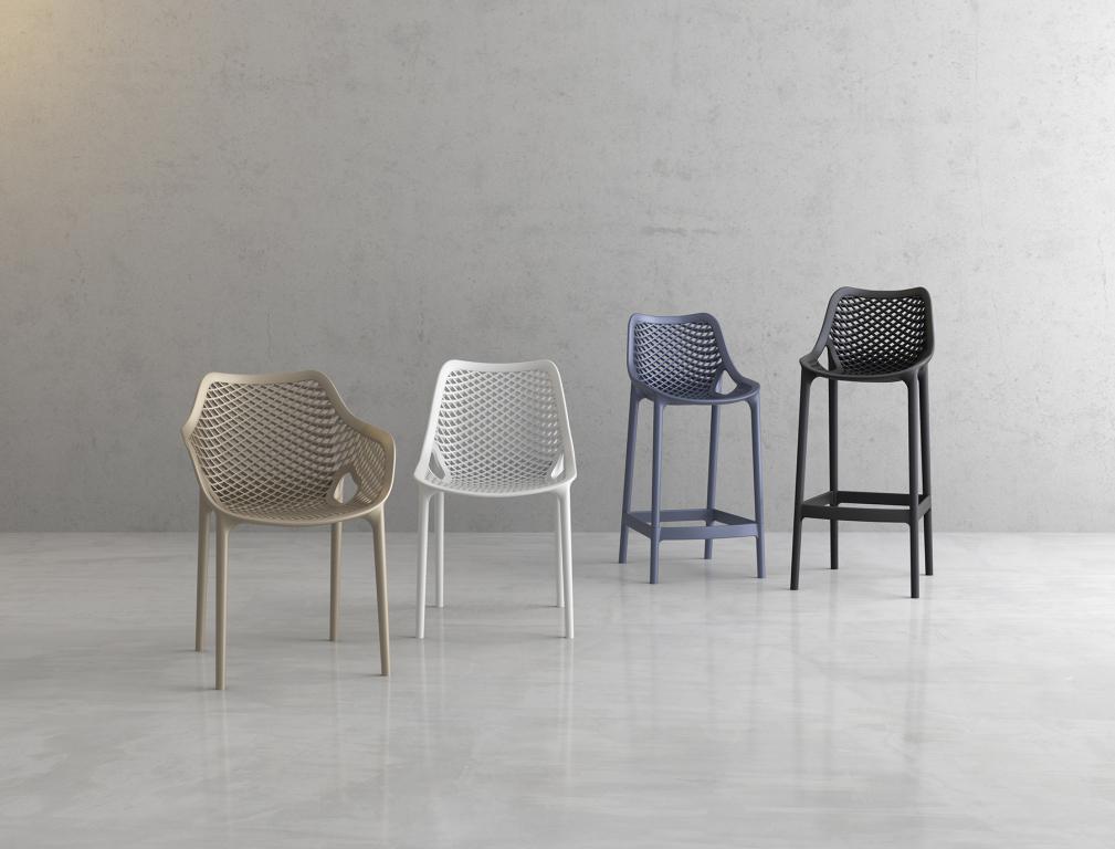 Siesta предлагает чрезвычайно широкий ассортимент изделий для помещений и на открытом воздухе с бесчисленными цветовыми вариациями, с использованием пластиковых материалов, таких как полипроплен и стекловолокно, в сочетании с деревом или металлом, или последних тенденций, таких как прозрачный поликарбонат или глянцевый нейлон PA6, с высокими техническими характеристиками, которые придают изделию неповторимые качества, такие как мягкость, непрозрачность, гибкостьи устойчивость к атмосферным воздействиям.
