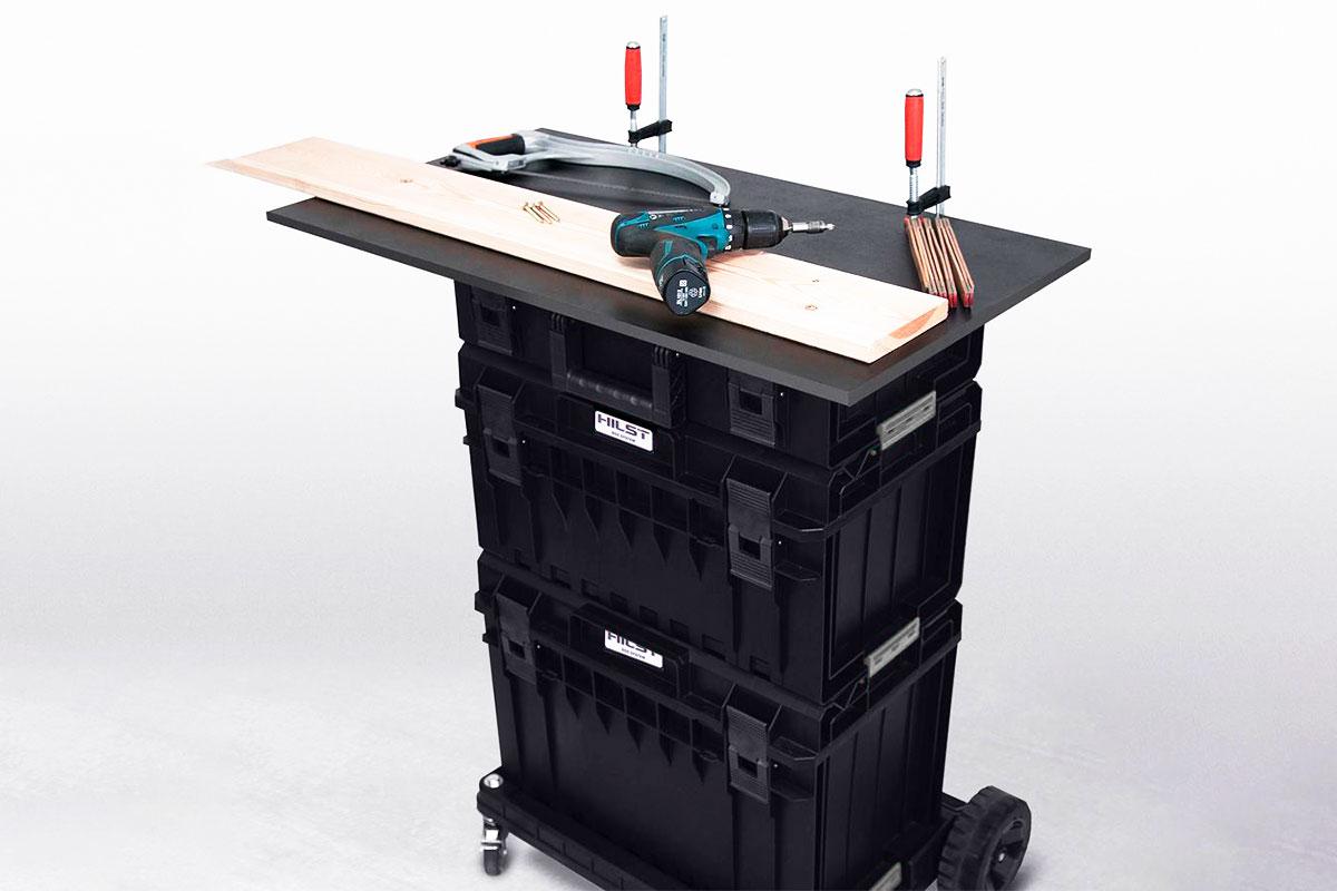 Система соединителей: все боксы жестко крепятся друг к другу, что позволяет создавать многоэлементные комплекты с любым набором ящиков HILST для удобства транспортировки.