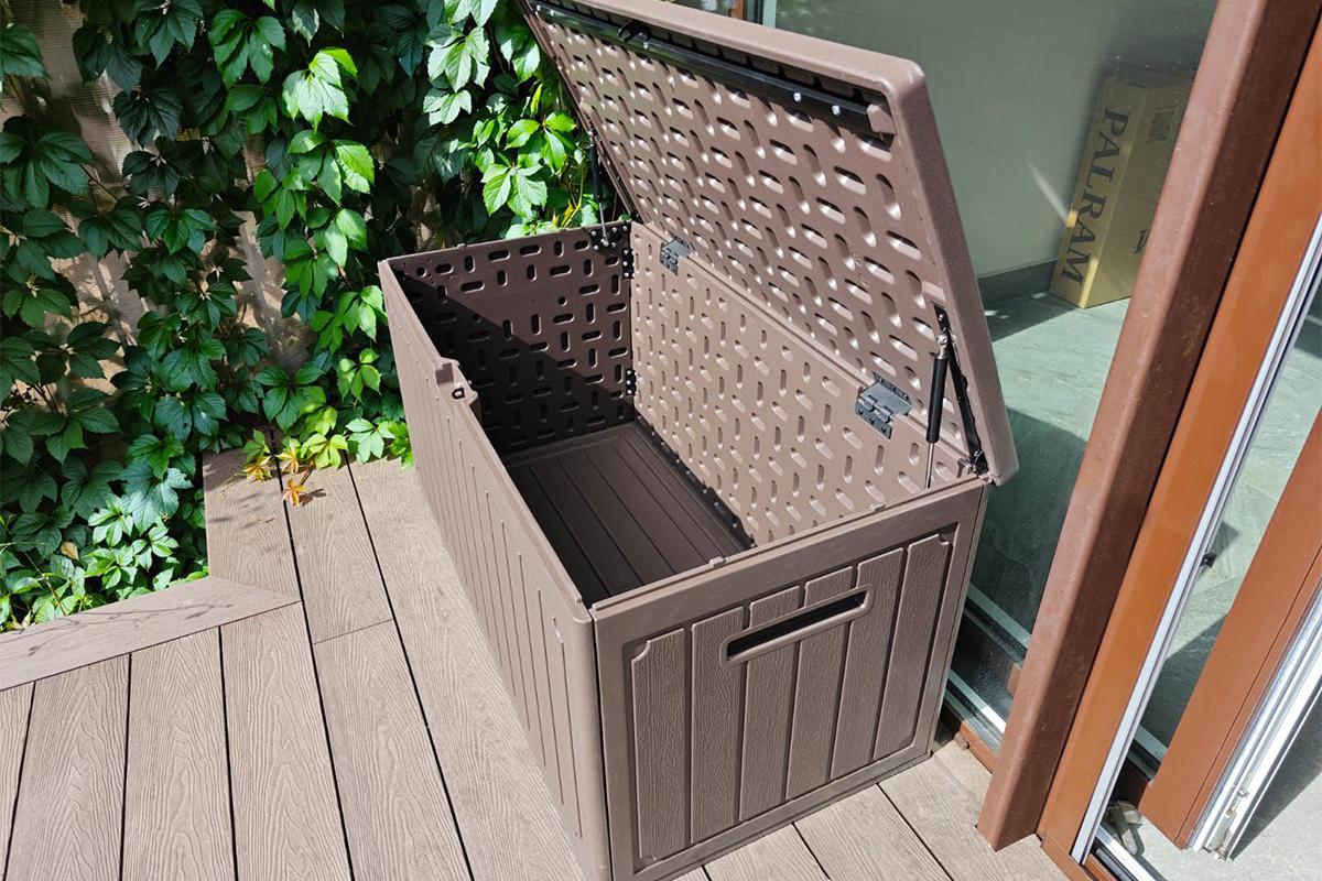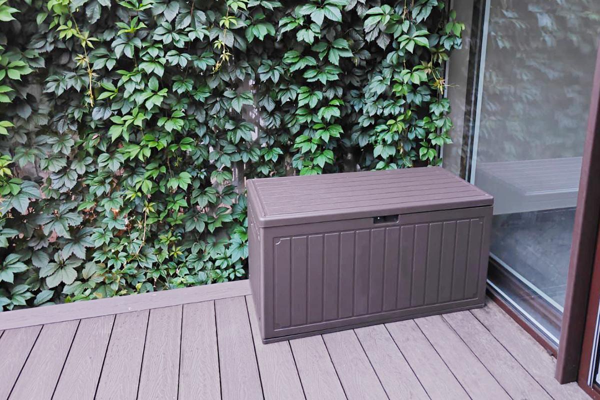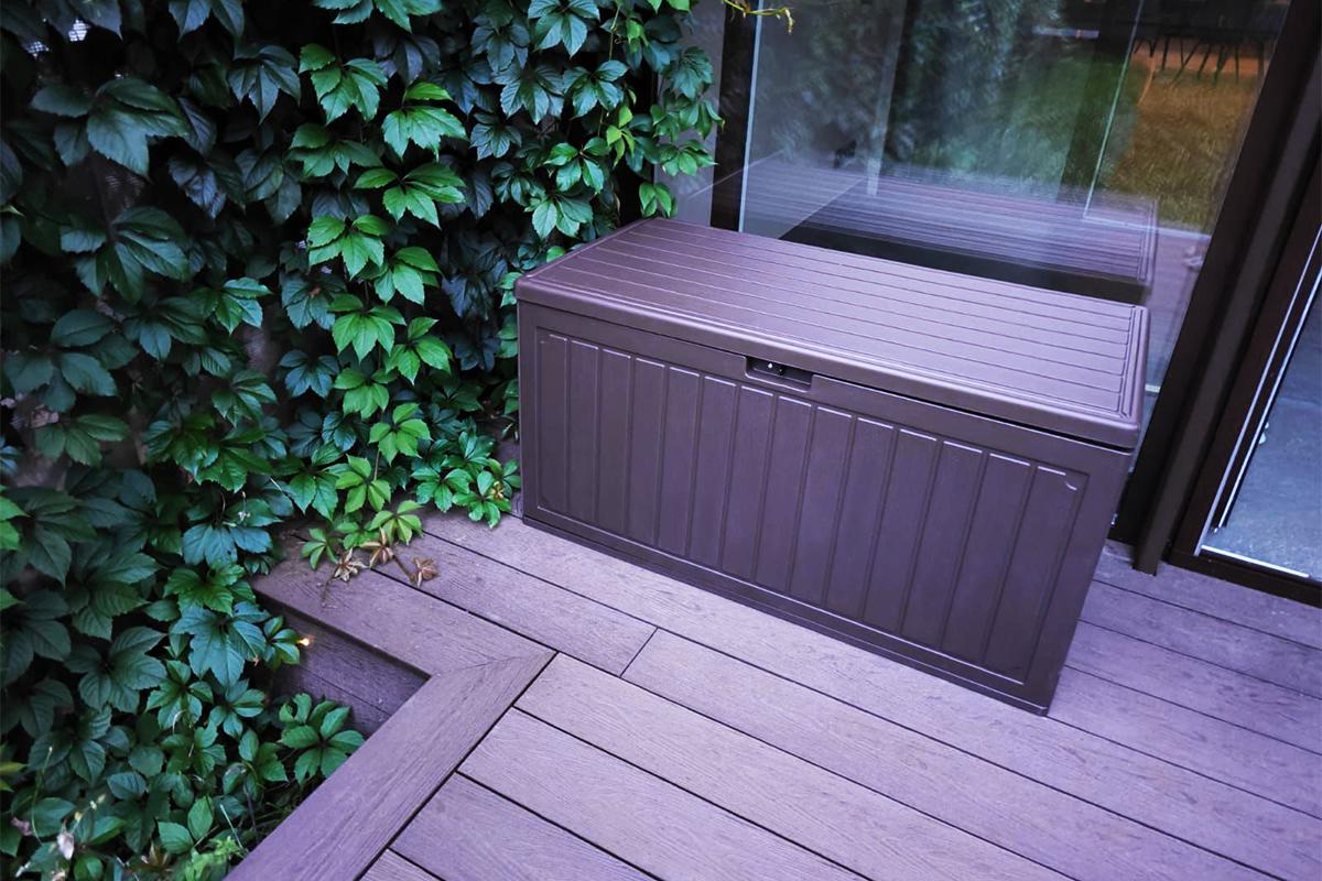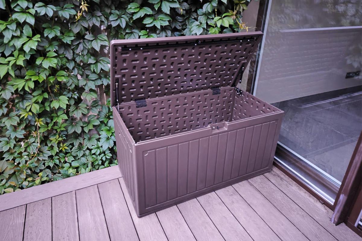 Объём 302 л идеально подойдёт для хранения садового инвентаря, подушек от мебели, аксессуаров для бассейна, шезлонгов, спортивного оборудования и сезонных принадлежностей.