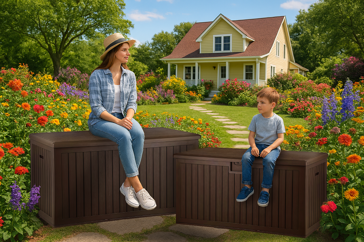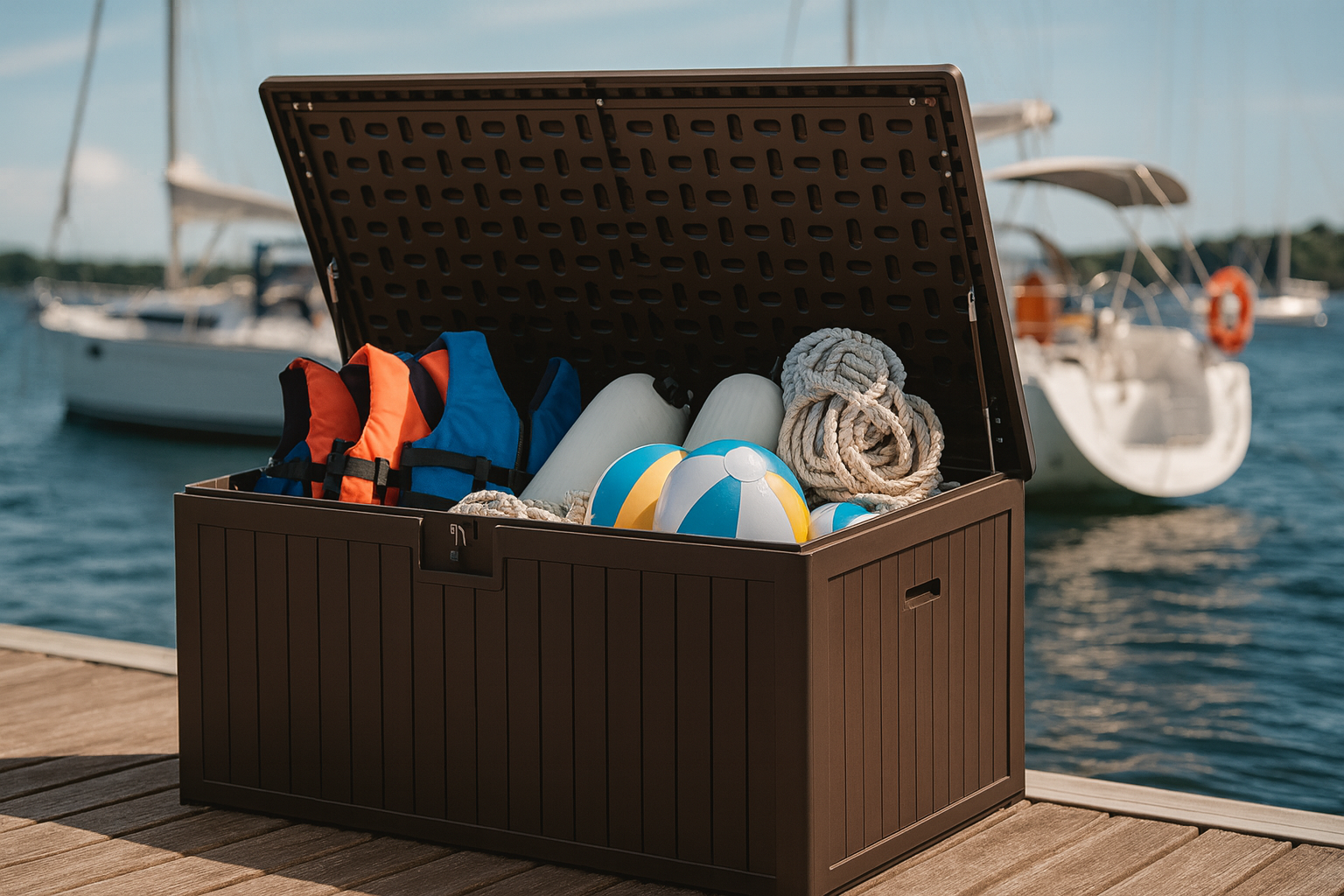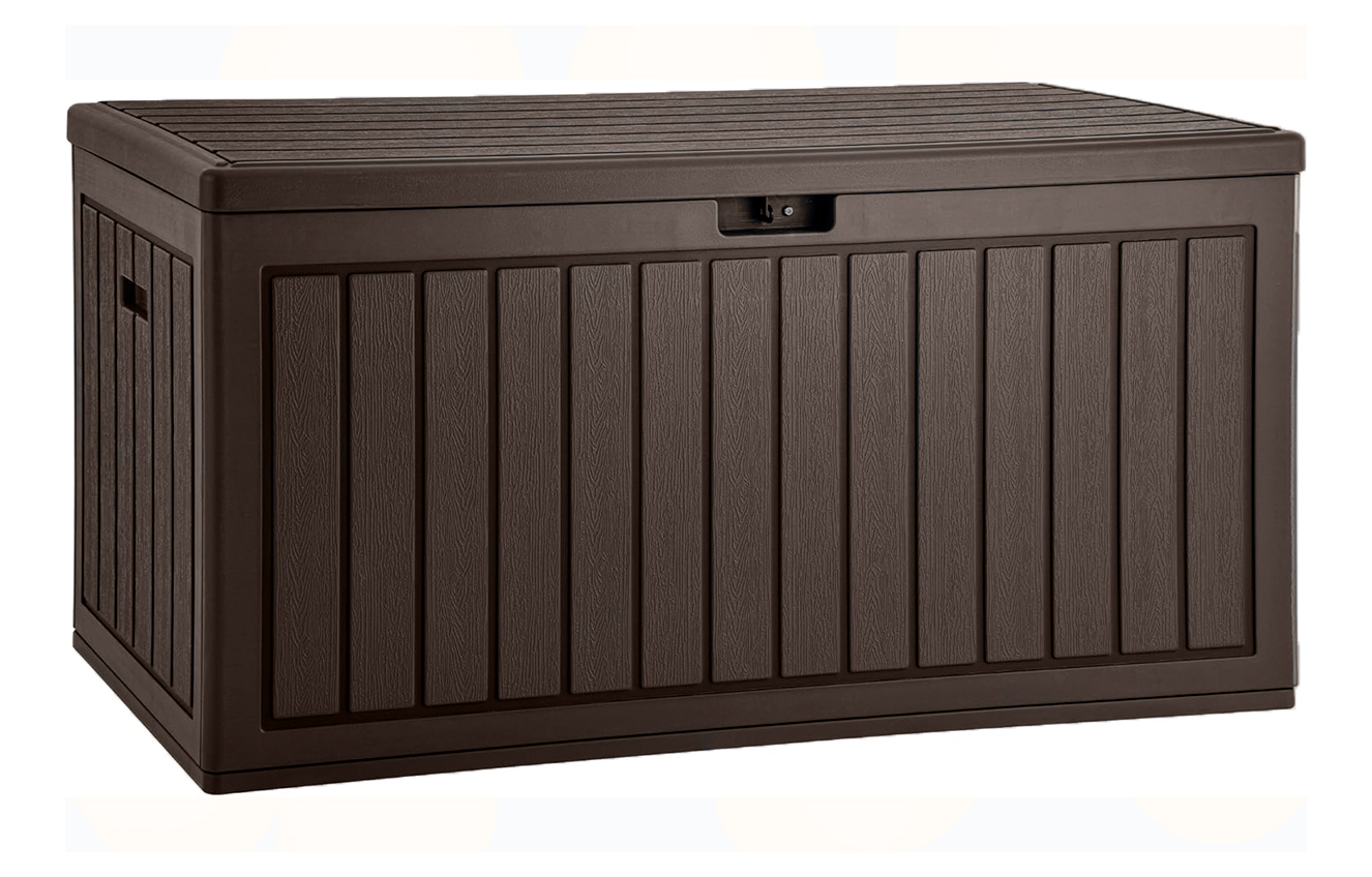 Объём 302 л идеально подойдёт для хранения садового инвентаря, подушек от мебели, аксессуаров для бассейна, шезлонгов, спортивного оборудования и сезонных принадлежностей.