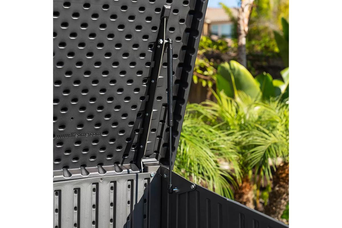 Текстура поверхности сундука Rough Cut имитирует дерево, как тактильно, так и визуально, а лаконичный и привлекательный дизайн станет идеальным дополнением для вашего участка.