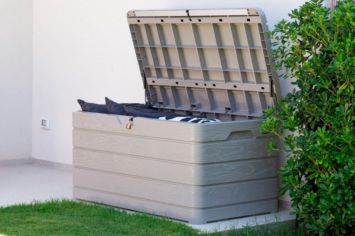 В сундуке достаточно места для хранения садовых инструментов, подушек, мебели для патио и многого другого.