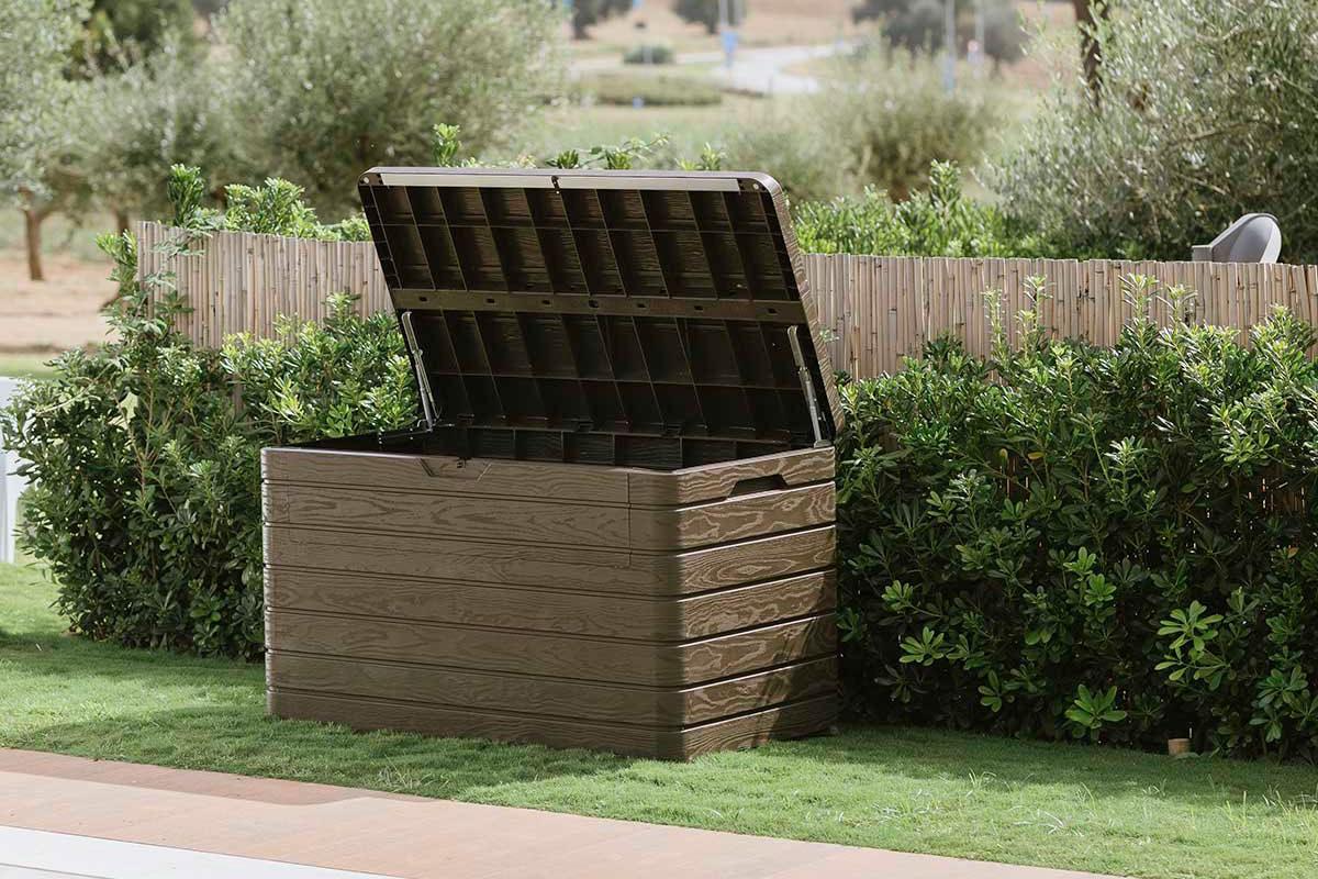В сундуке достаточно места для хранения садовых инструментов, подушек, мебели для патио и многого другого.