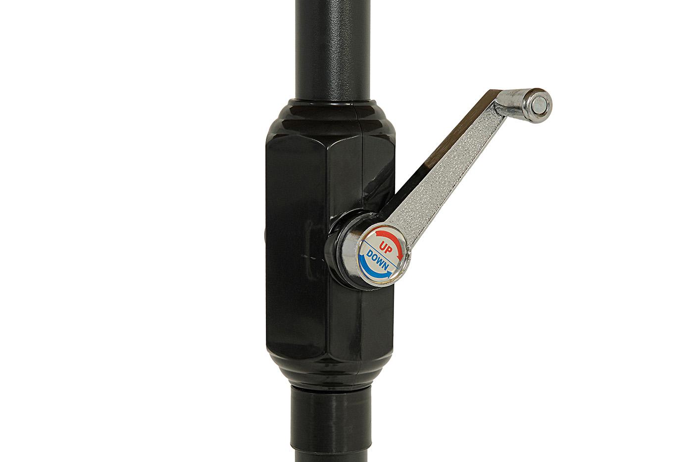 Зонт «Джулия» на центральной алюминиевой опоре с размером купола 3×3 м. Используется для установки во дворах, на пляжах, в парках или на любой открытой территории. Он служит для защиты от солнца, дождя и ветра. Высота от земли до нижнего края купола - 211 см. Конструкция состоит из 16 длинных спиц (148 см - 8 шт. и 60 см - 8 шт.) Тент изготовлен из 100% полиэстера, плотностью 180 г/м2 с водоотталкивающей пропиткой. Металлическая телескопическая стойка Ø38 мм. Конструкция состоит из 8 алюминиевы