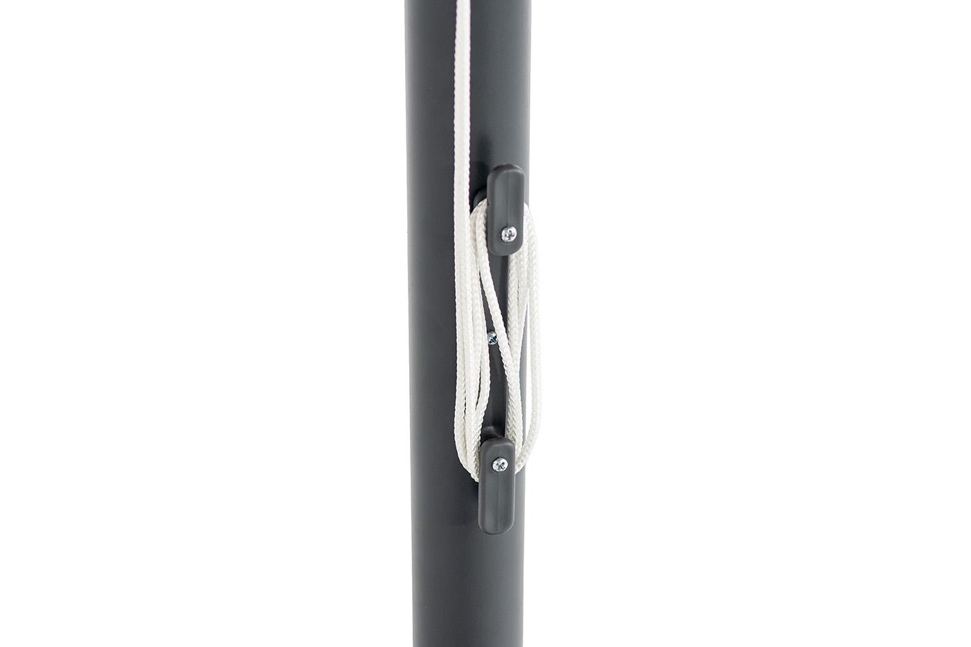 Зонт «Джулия» на центральной алюминиевой опоре с размером купола 3×3 м. Используется для установки во дворах, на пляжах, в парках или на любой открытой территории. Он служит для защиты от солнца, дождя и ветра. Высота от земли до нижнего края купола - 211 см. Конструкция состоит из 16 длинных спиц (148 см - 8 шт. и 60 см - 8 шт.) Тент изготовлен из 100% полиэстера, плотностью 180 г/м2 с водоотталкивающей пропиткой. Металлическая телескопическая стойка Ø38 мм.