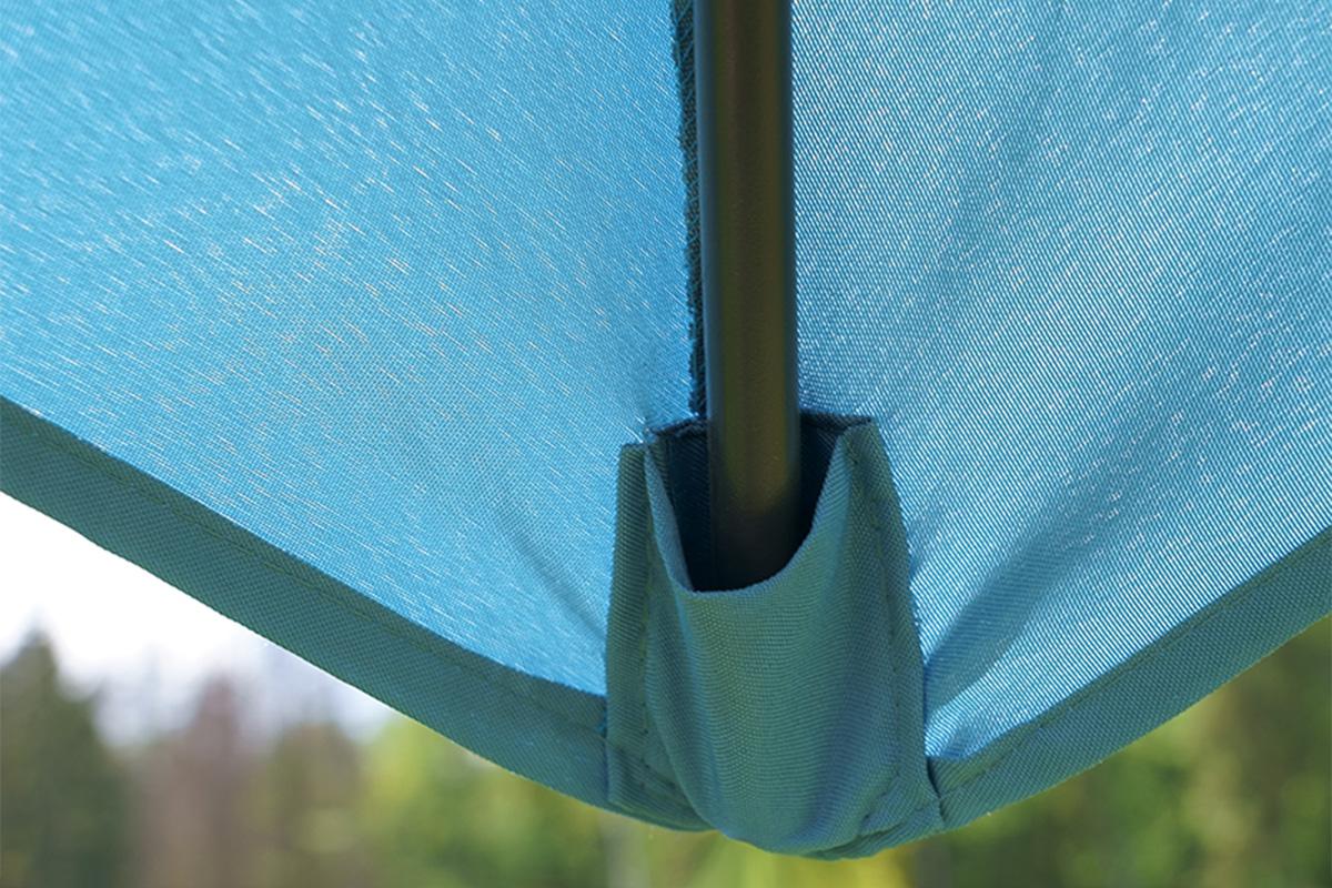 Система натяжения полотна изготовлена из высококачественного стекловолокна. Купол сшит из полиэстера плотностью 160 г/м2, который не линяет, не садится и быстро сохнет и не пропускает влагу.