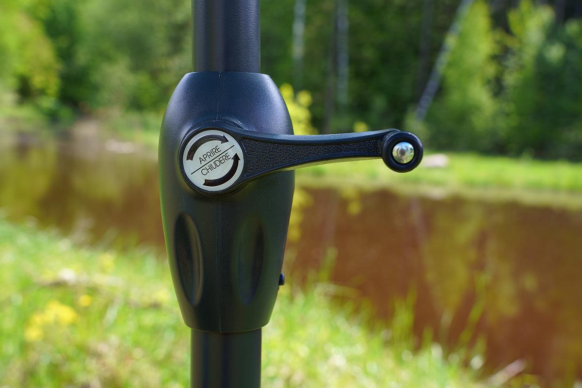 В конструкции использованы 6 овальных спиц размером 12х18 мм и механизм открывания push-up. Металлические толстые спицы выдерживают сильнейшую нагрузку ветра.