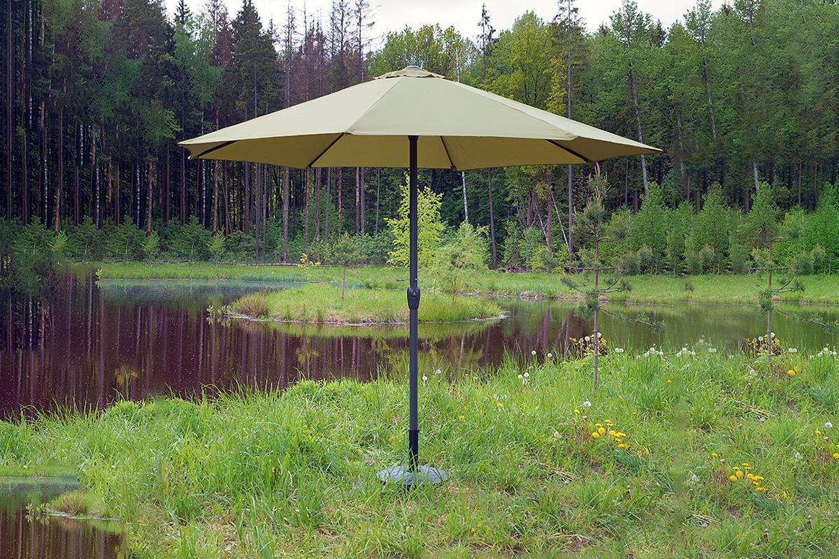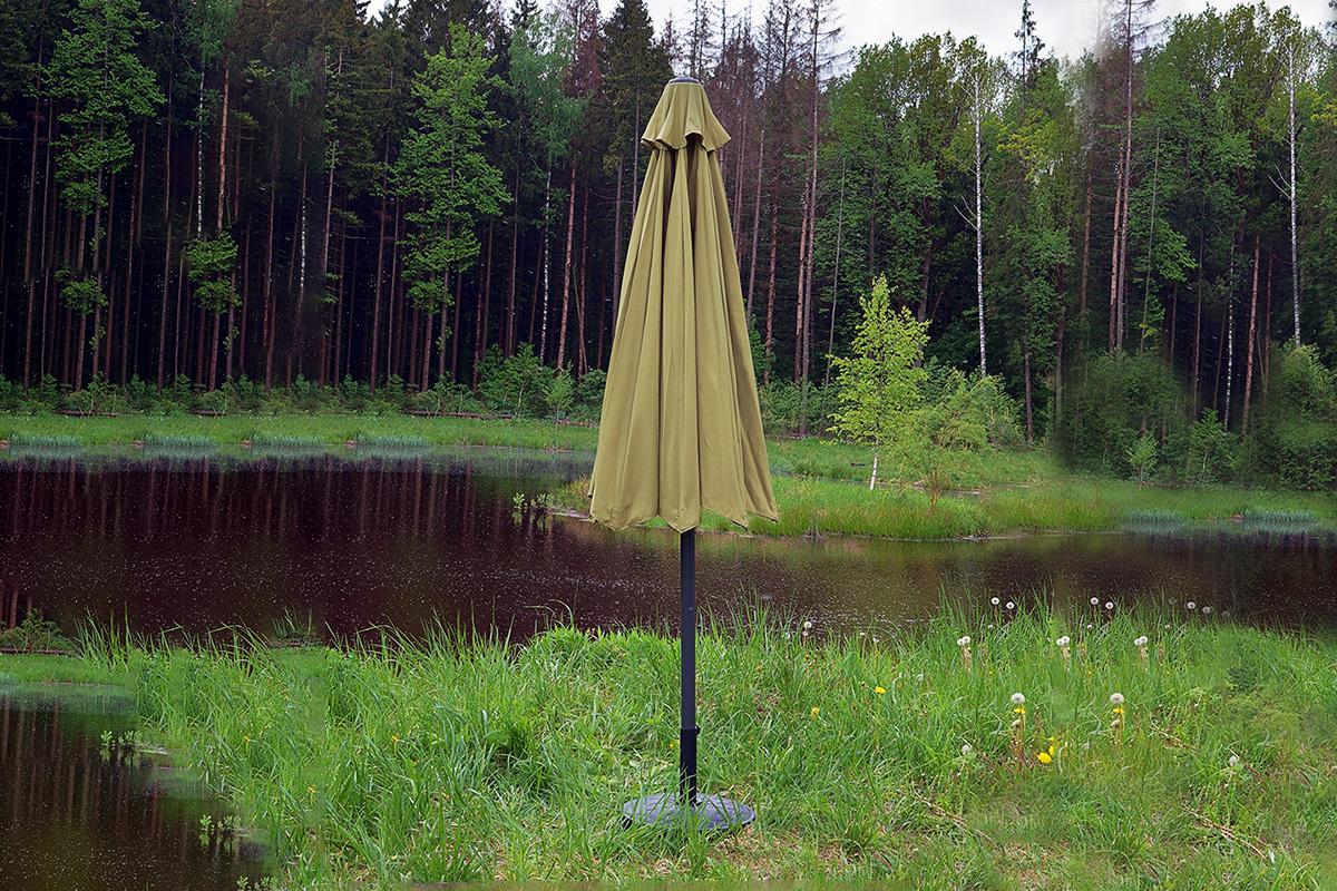 Зонт САЛЕРНО можно разместить в любое пластиковое или металлическое основание, которое приобретается дополнительно. Бетонное основание в комплект не входит.