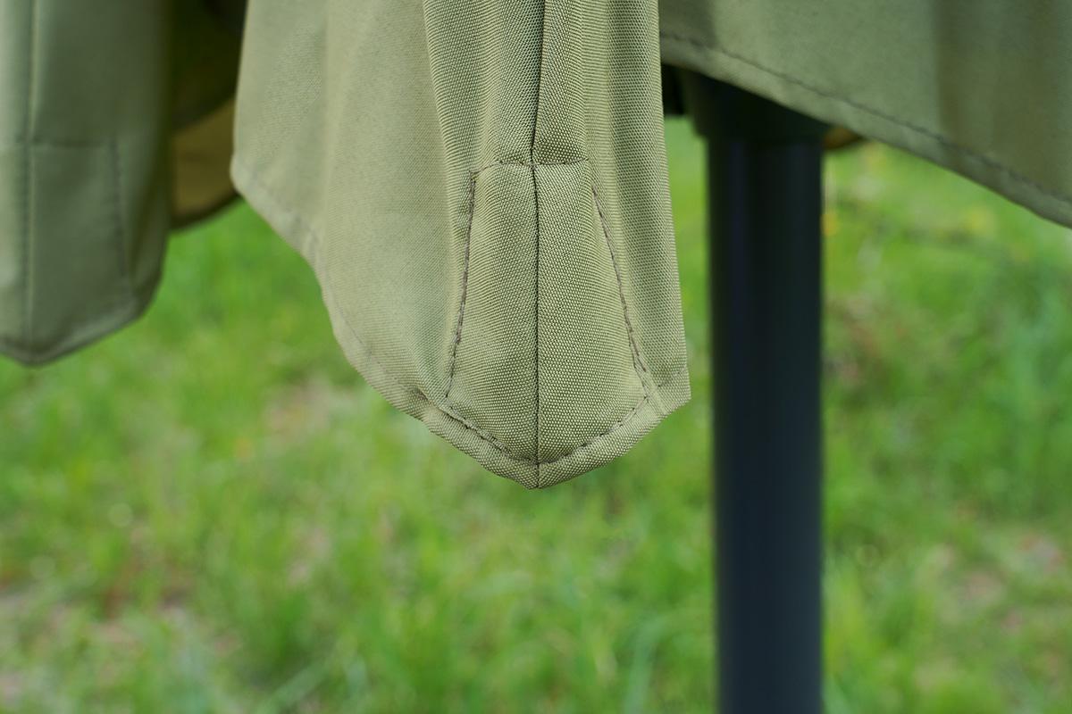 Система натяжения полотна изготовлена из высококачественного стекловолокна. Купол сшит из полиэстера плотностью 160 г/м2, который не линяет, не садится и быстро сохнет и не пропускает влагу.
