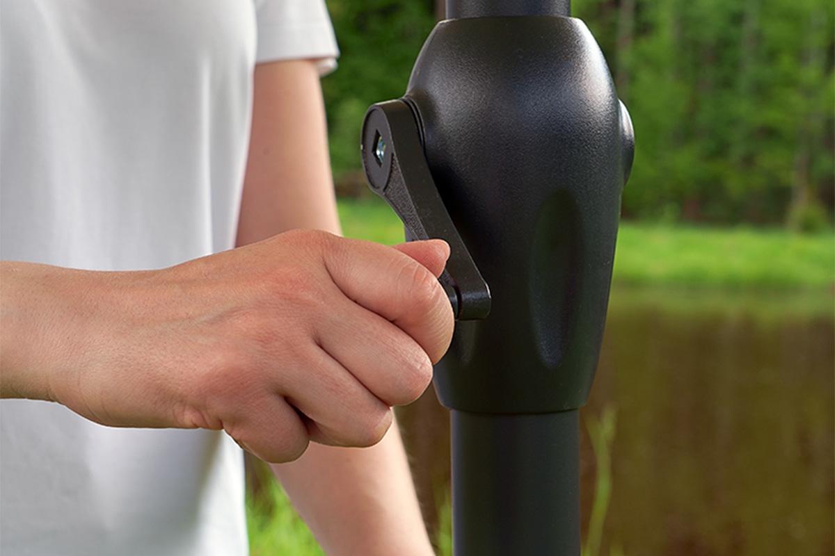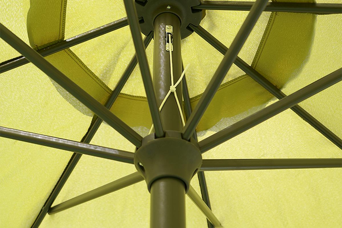 В конструкции использованы 8 овальных спиц размером 12х18 мм и механизм открывания push-up. Металлические толстые спицы выдерживают сильнейшую нагрузку ветра.