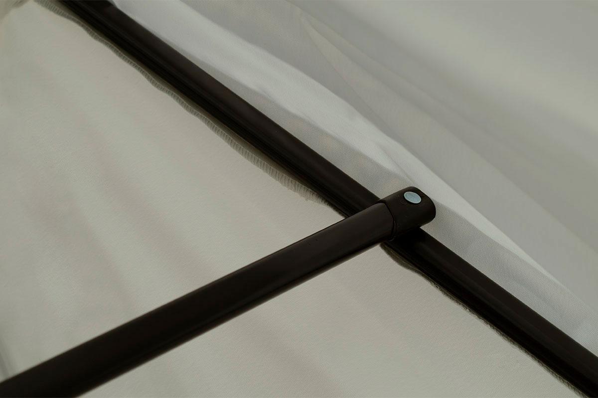 Система натяжения полотна изготовлена из высококачественного стекловолокна. Купол сшит из полиэстера плотностью 160 г/м2, который не линяет, не садится и быстро сохнет.
