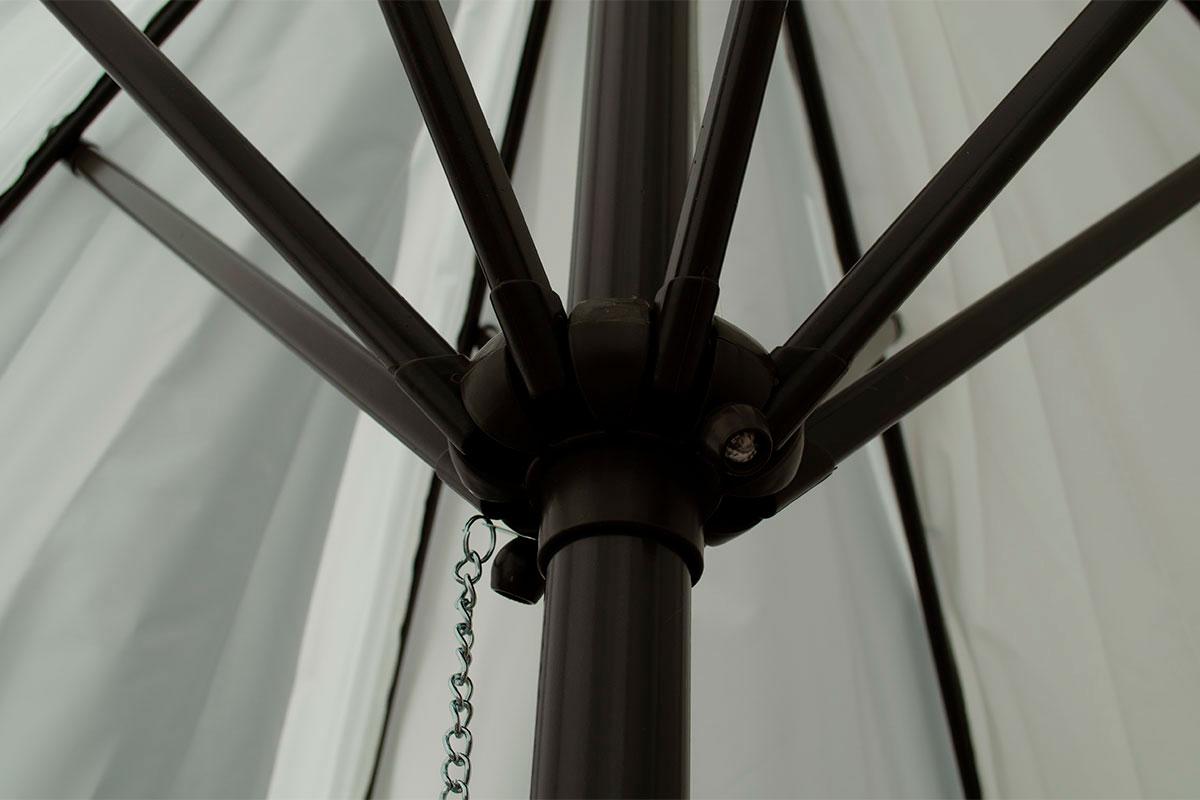 В конструкции использованы 6 овальных спиц размером 12х18 мм и механизм открывания push-up. Металлические толстые спицы выдерживают сильнейшую нагрузку ветра.