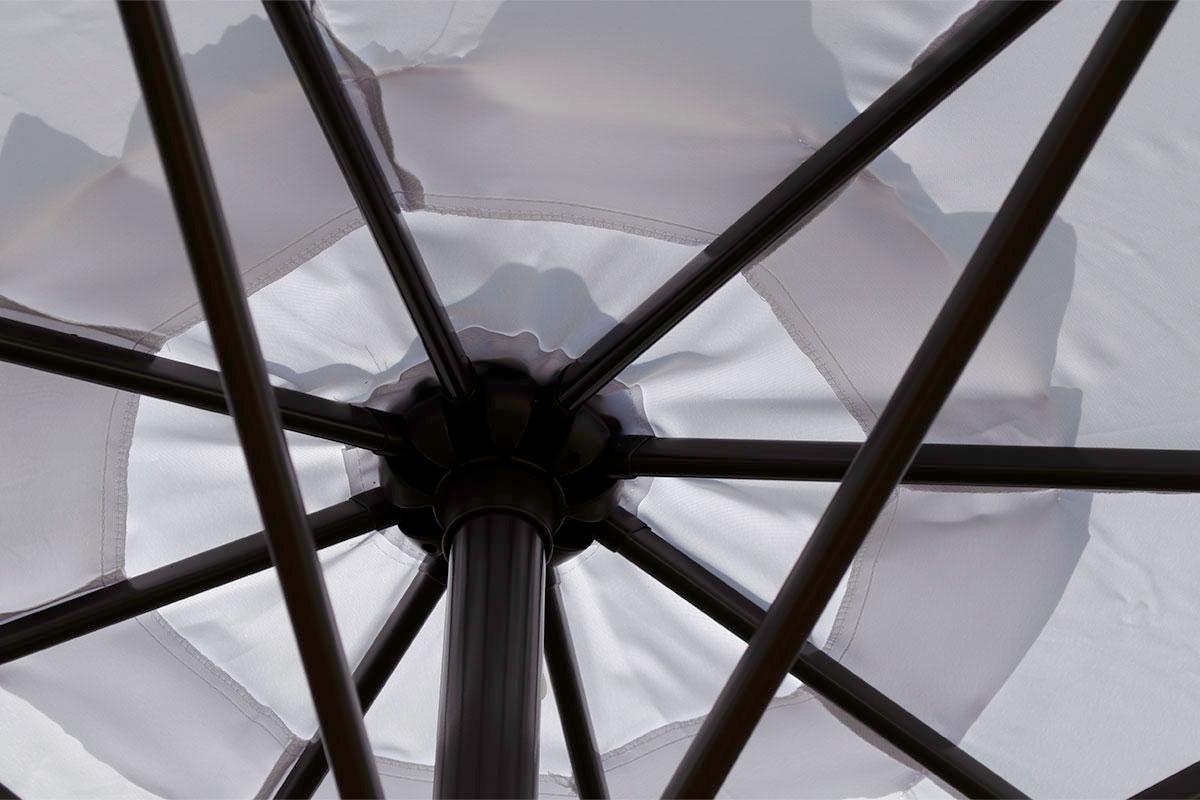 Bizzotto Верона - серый зонт с диаметром купола 2,70 м с элегантным и современным итальянским дизайном, идеально подходит для защиты от солнца в течение всего дня в зонах отдыха.