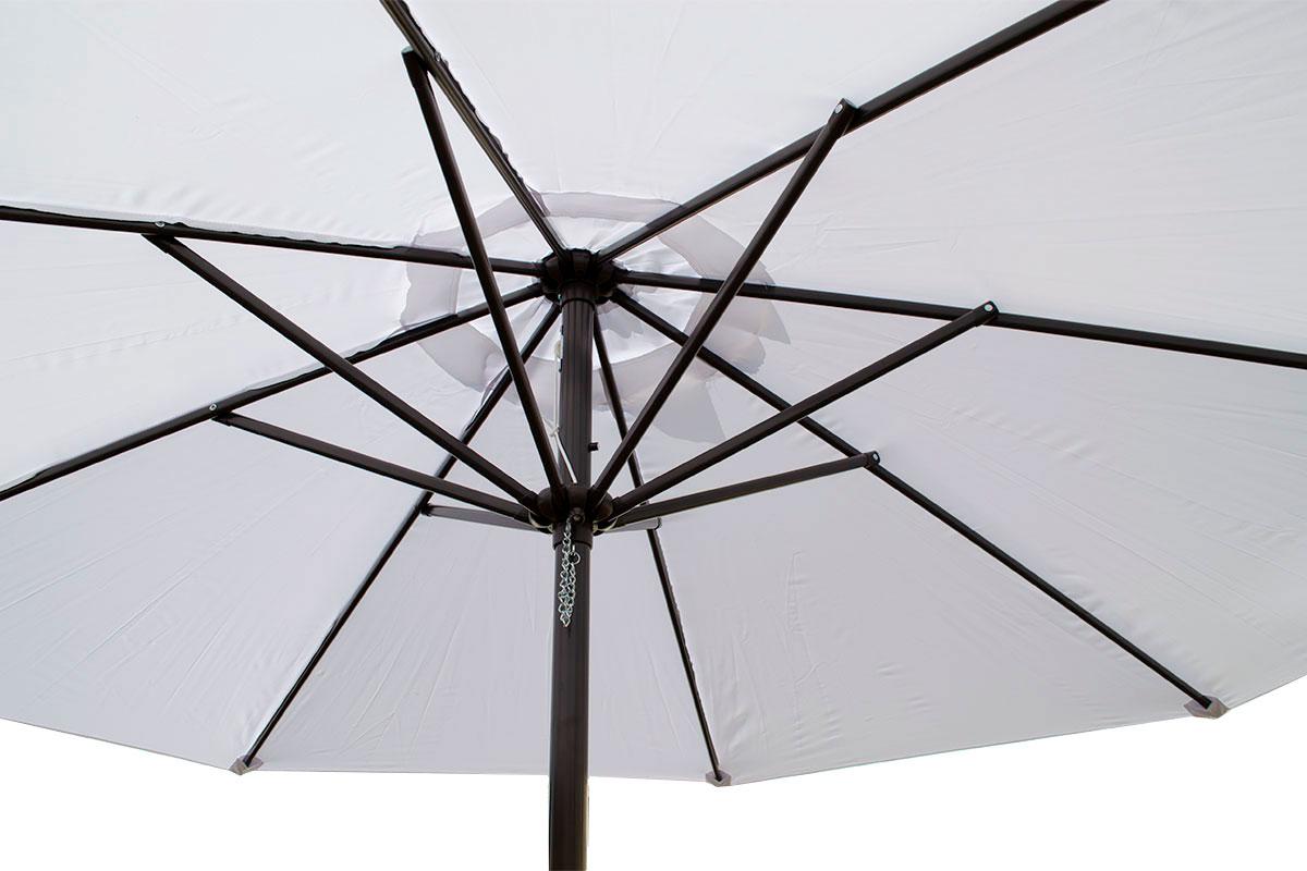 В конструкции использованы 6 овальных спиц размером 10х18 мм и механизм открывания push-up. Металлические толстые спицы выдерживают сильнейшую нагрузку ветра.