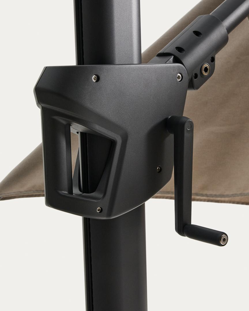 Консольный зонт Noli обеспечивает достаточное и регулируемое затенение для комфортного отдыха на открытом воздухе. Его алюминиевая конструкция с шарнирным боковым рычагом позволяет легко регулировать навес и освобождает пространство под зонтом, органично вписываясь в террасы и сады. Он может вращаться на 360° и наклоняться до 90°, адаптируясь к траектории движения солнца в течение дня. Система открывания с помощью рукоятки делает его удобным и простым в использовании. Ткань изготовлена из полиэстера плотностью 200 г/м².