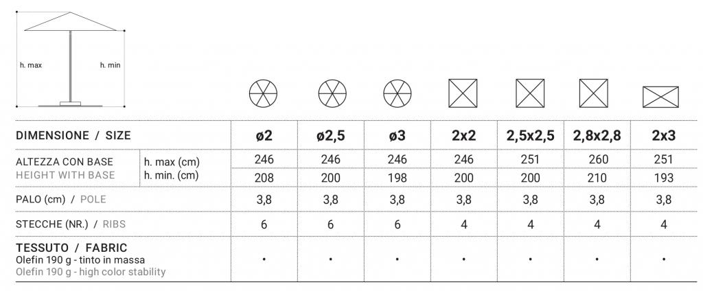 Широкий ассортимент продукции варьируется от классических и вневременных зонтиков с центральным полюсом до моделей с боковым рычагом (с 1, 2 или 4 рычагами) до телескопических гигантов.