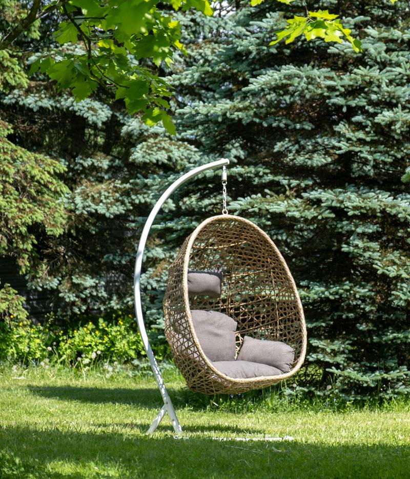 Уютное садовое кресло-кокон «Флоренция» для организации лаунж-зоны. Основание изготовлено из стали окрашенного порошковой износостойкой краской белого оттенка, вручную оплетенного плоским искусственным ротангом соломенного цвета. Этот материал не боится перепадов температуры, прямых солнечных лучей, дождя и ветра. Для комфортного использования на кресле предусмотрена подушки серо-коричневого цвета. Чехол - съемные с влагоотталкивающей пропиткой. Максимальная нагрузка - 150 кг. Полный ра