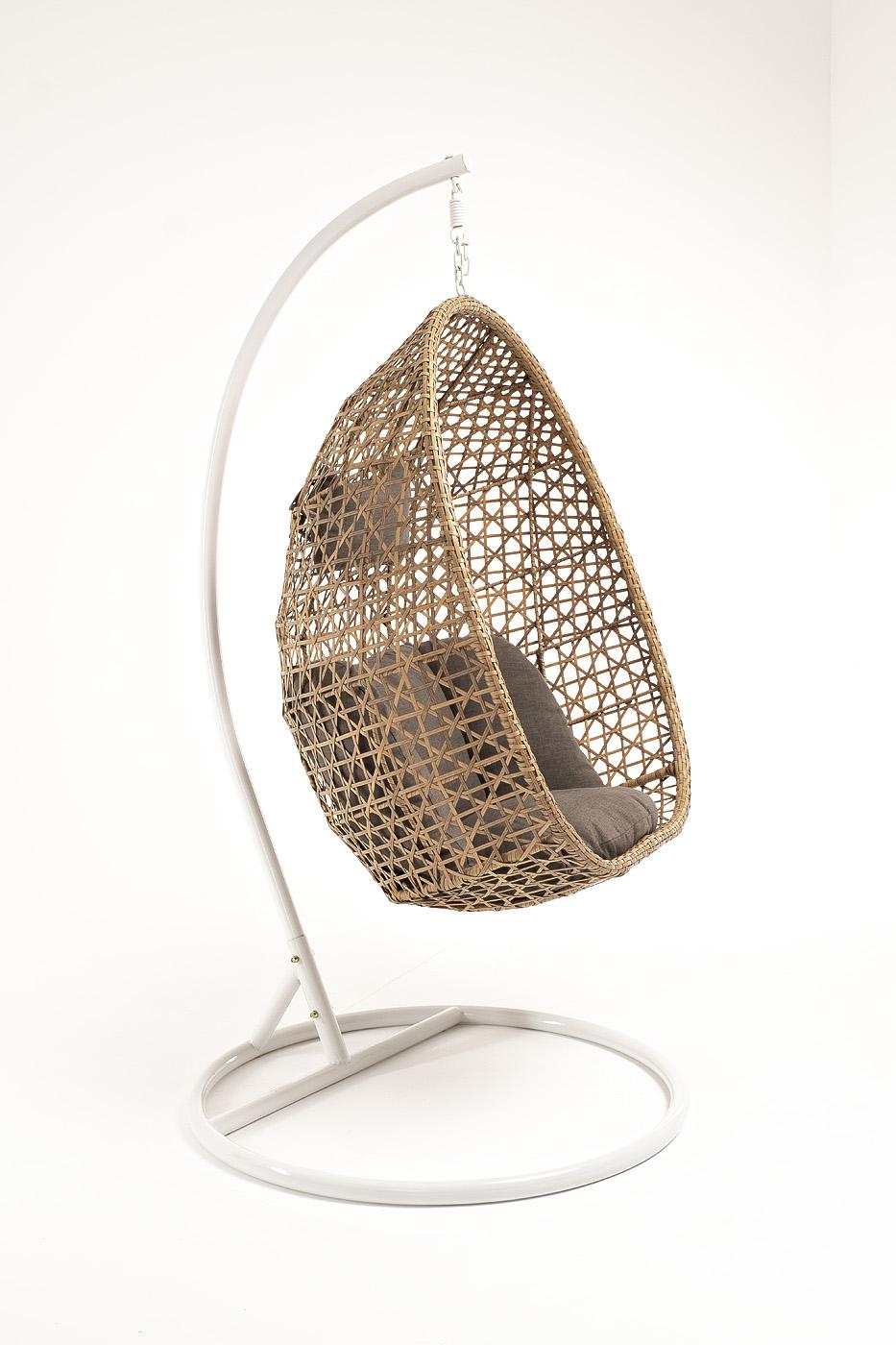 Кресло подвесное 4SIS "Флоренция" подвесное кресло-кокон из искусственного ротанга, цвет соломенный с серой подушкой арт. YH-L23701W