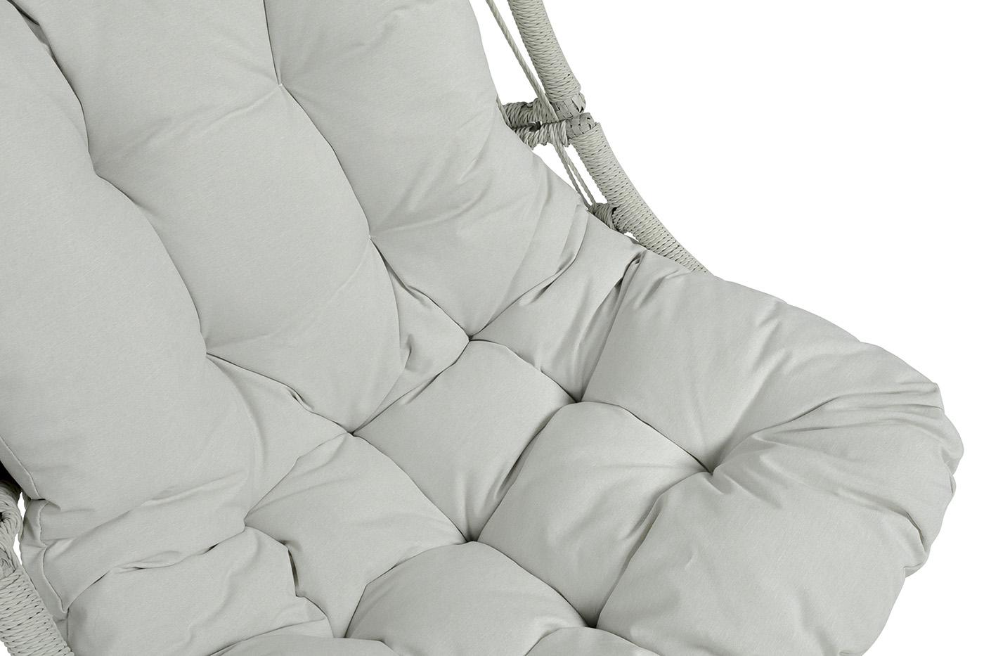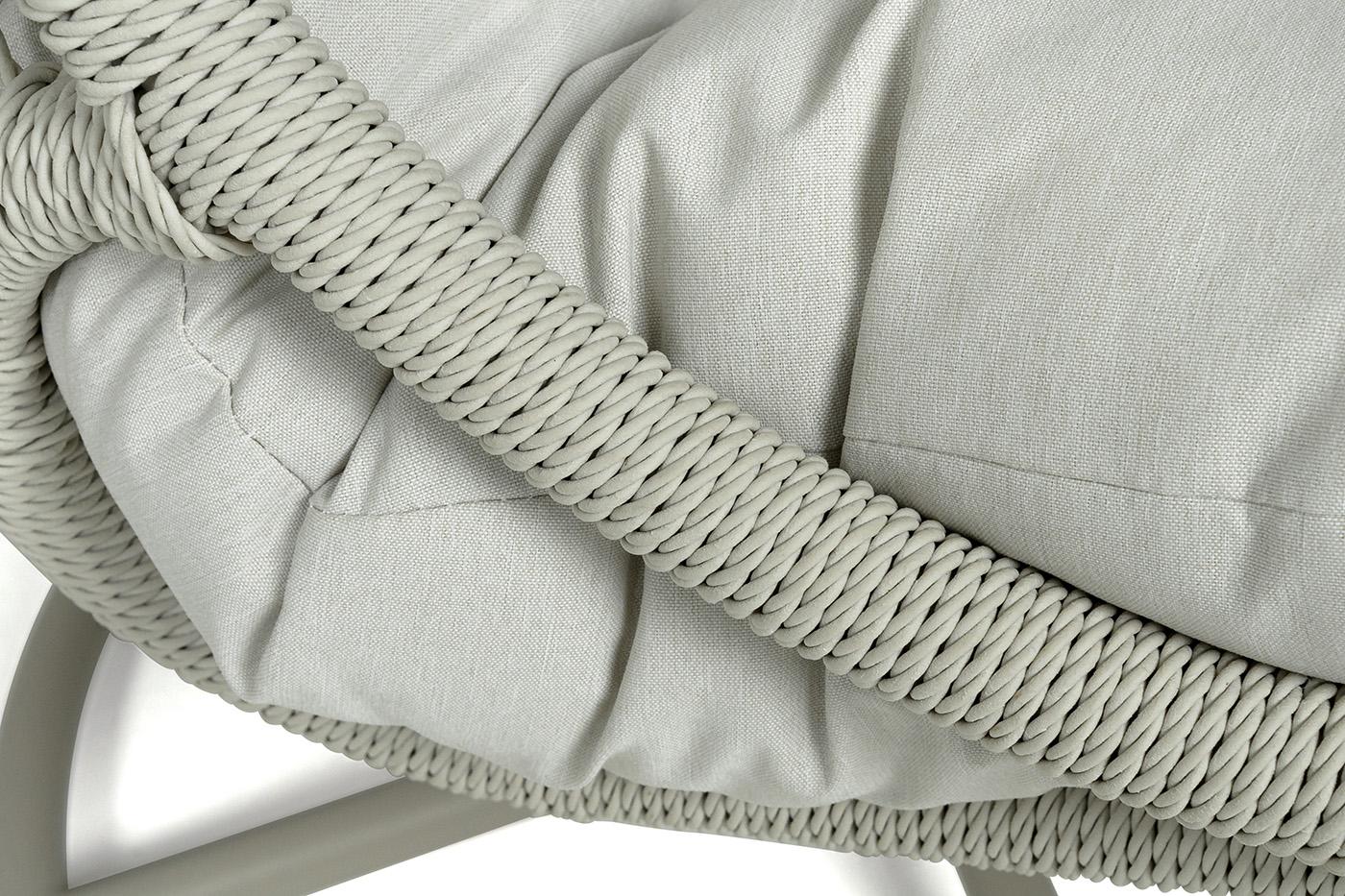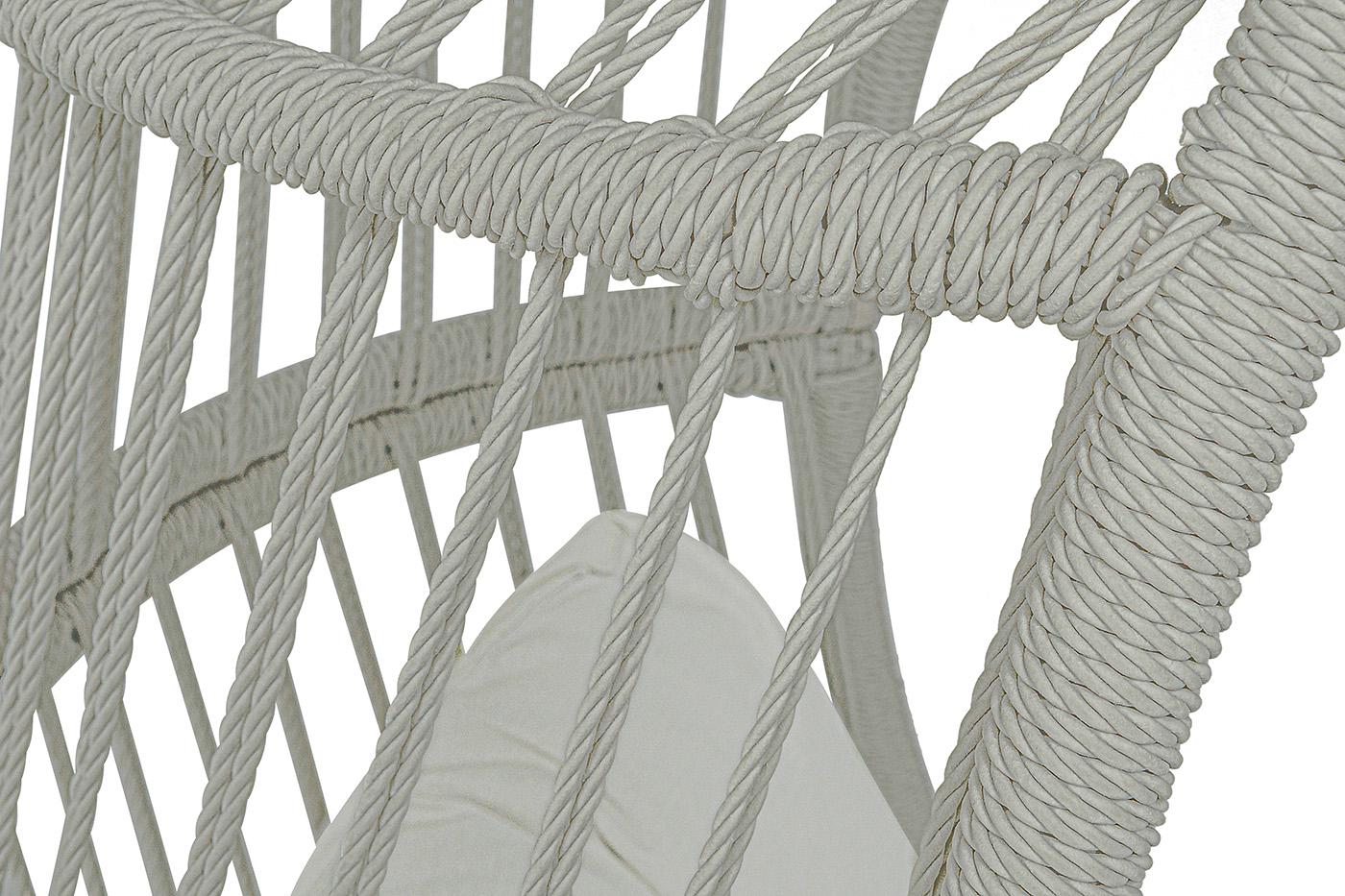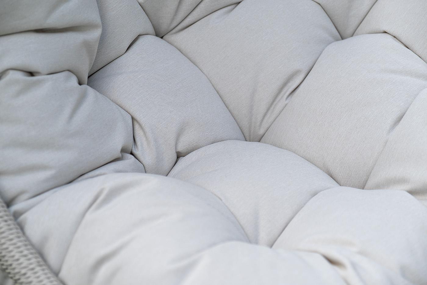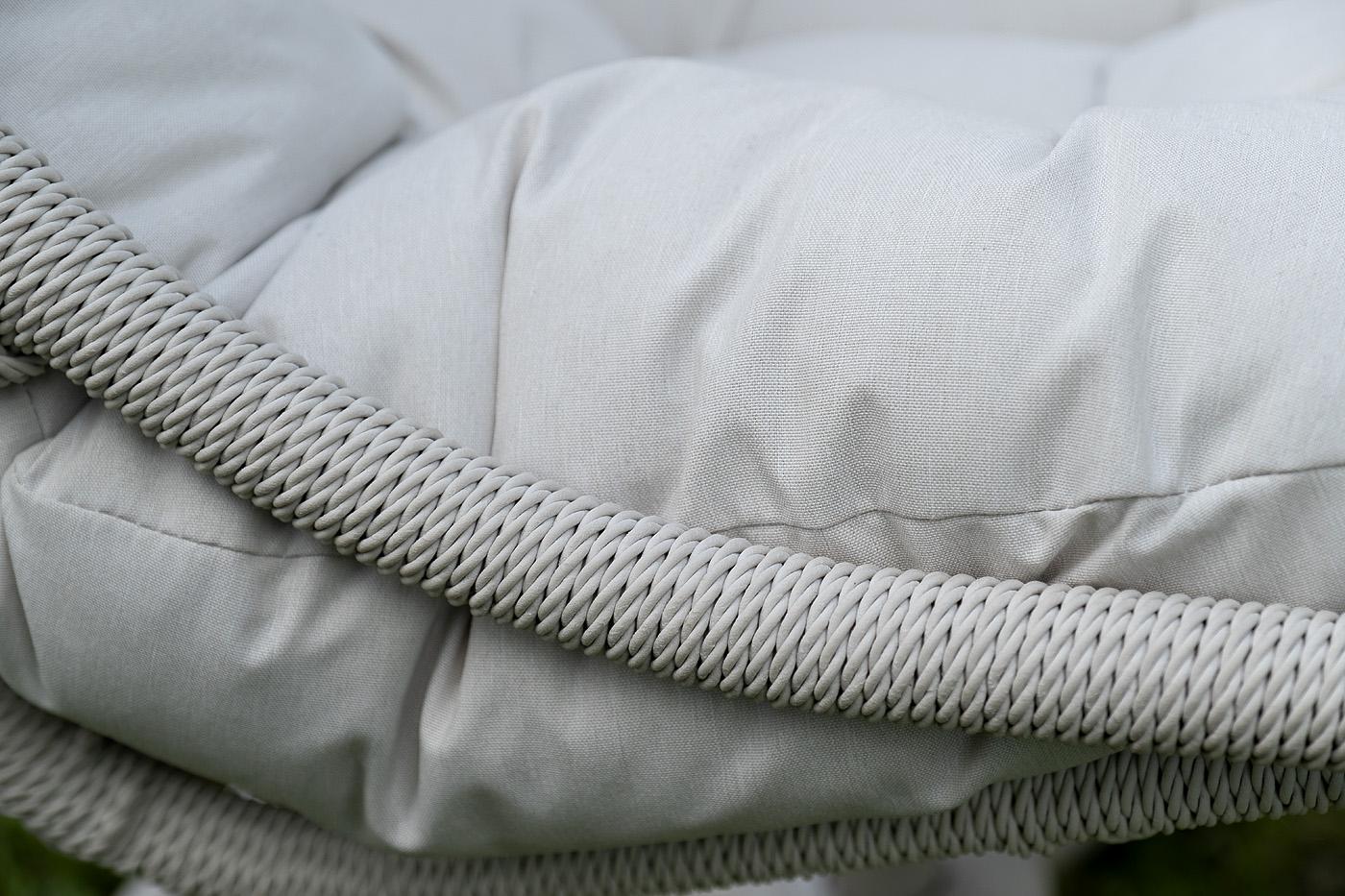 Плетеное кресло-кокон «Севилья» для организации зоны отдыха в саду, на террасе или летней площадке ресторана. Каркас изготовлен из стали, окрашенного порошковой износостойкой краской белого цвета. Оплетка – плоский искусственный ротанг светло-серого оттенка. Материал устойчив к перепадам погоды и подходит для использования на открытых пространствах. Для удобства сидения на кресле предусмотрена удлиненная подушка светло-серого цвета из полиэстера плотностью 270гр/м2 с влагоотталкивающей п