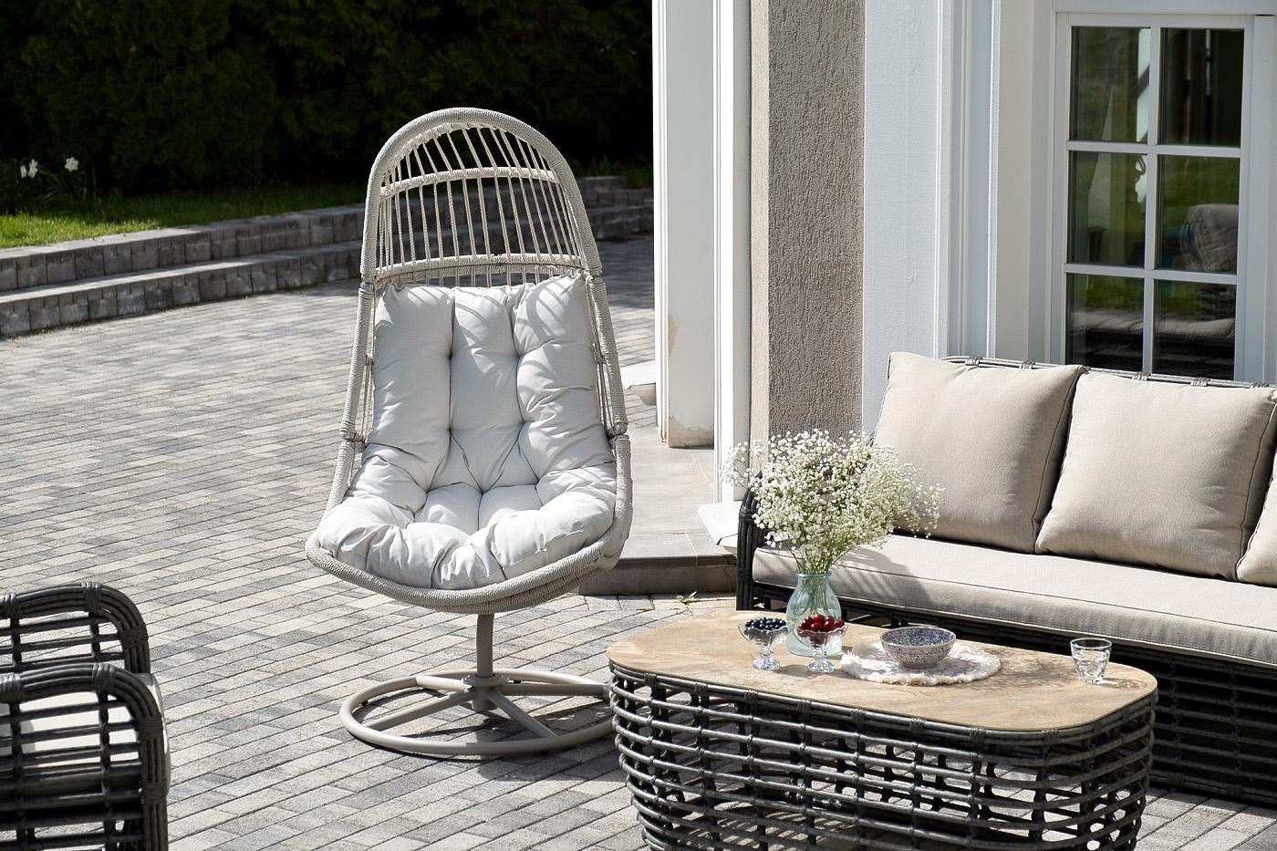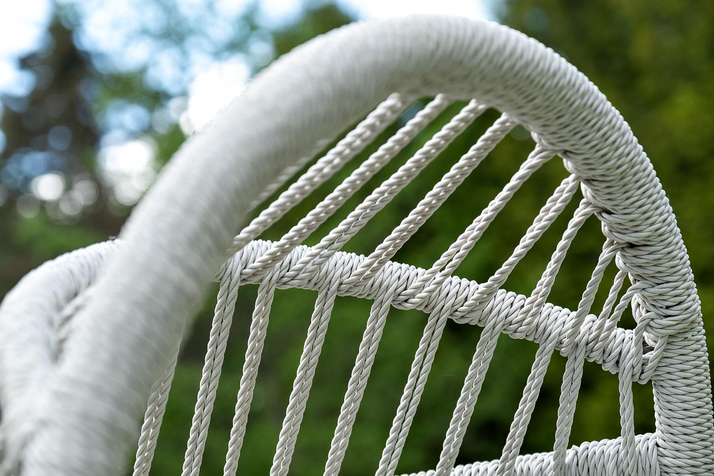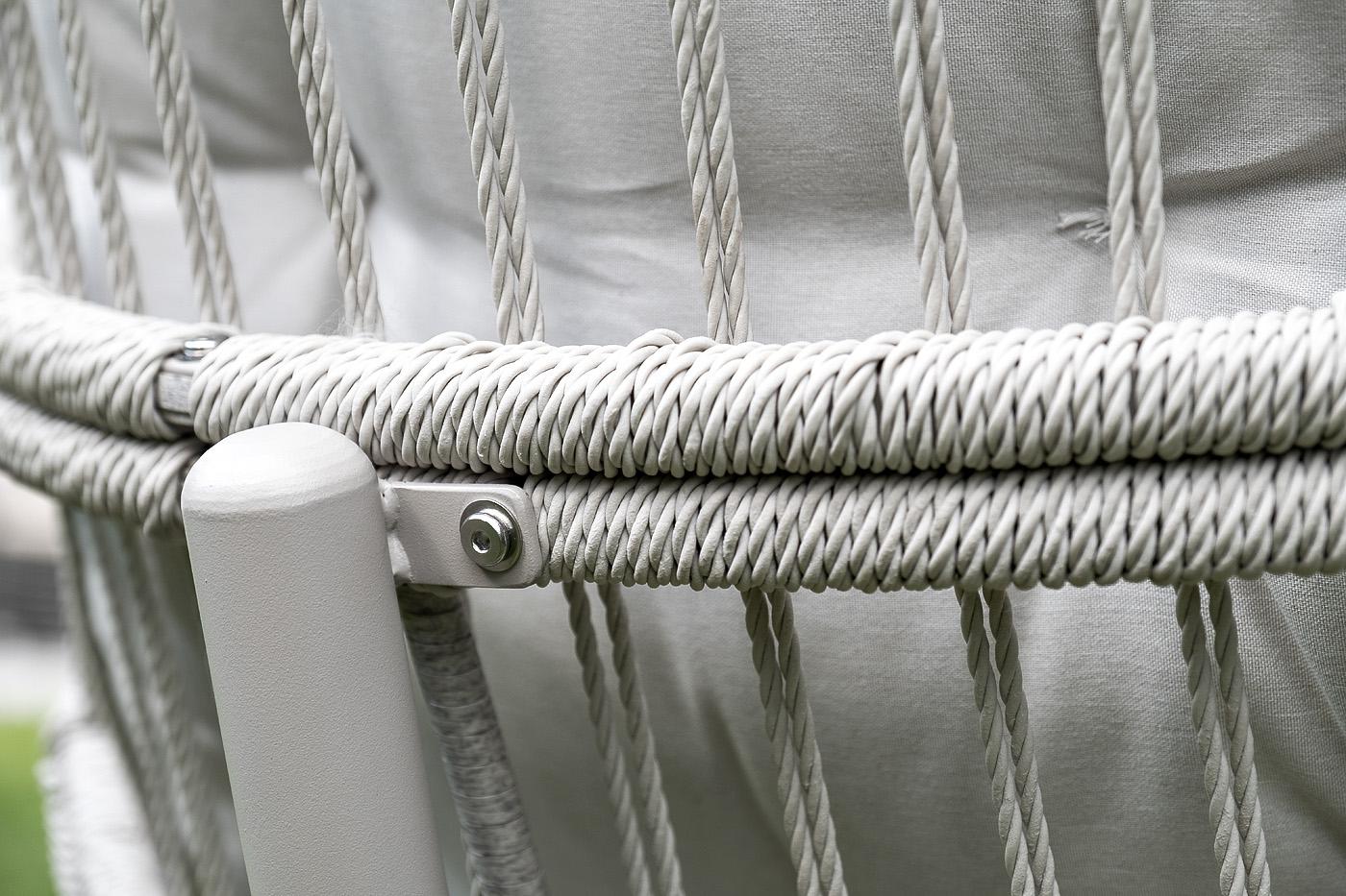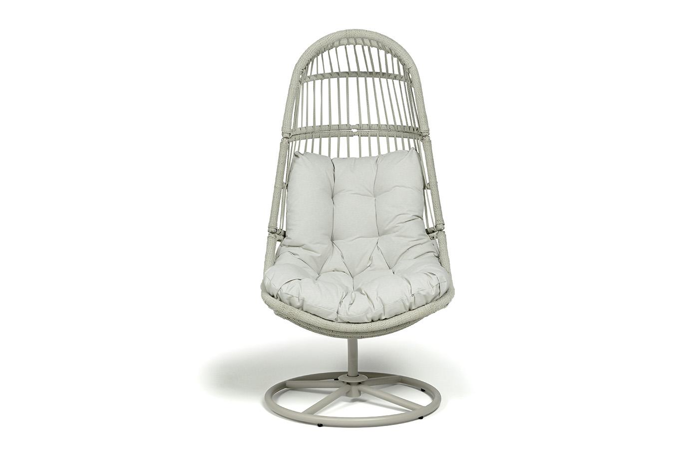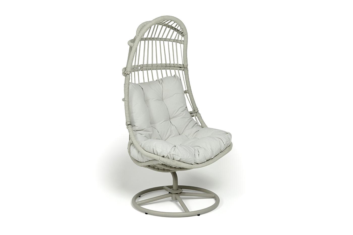 Плетеное кресло-кокон «Севилья» для организации зоны отдыха в саду, на террасе или летней площадке ресторана. Каркас изготовлен из стали, окрашенного порошковой износостойкой краской белого цвета. Оплетка – плоский искусственный ротанг светло-серого оттенка. Материал устойчив к перепадам погоды и подходит для использования на открытых пространствах. Для удобства сидения на кресле предусмотрена удлиненная подушка светло-серого цвета из полиэстера плотностью 270гр/м2 с влагоотталкивающей п
