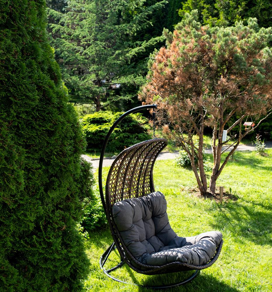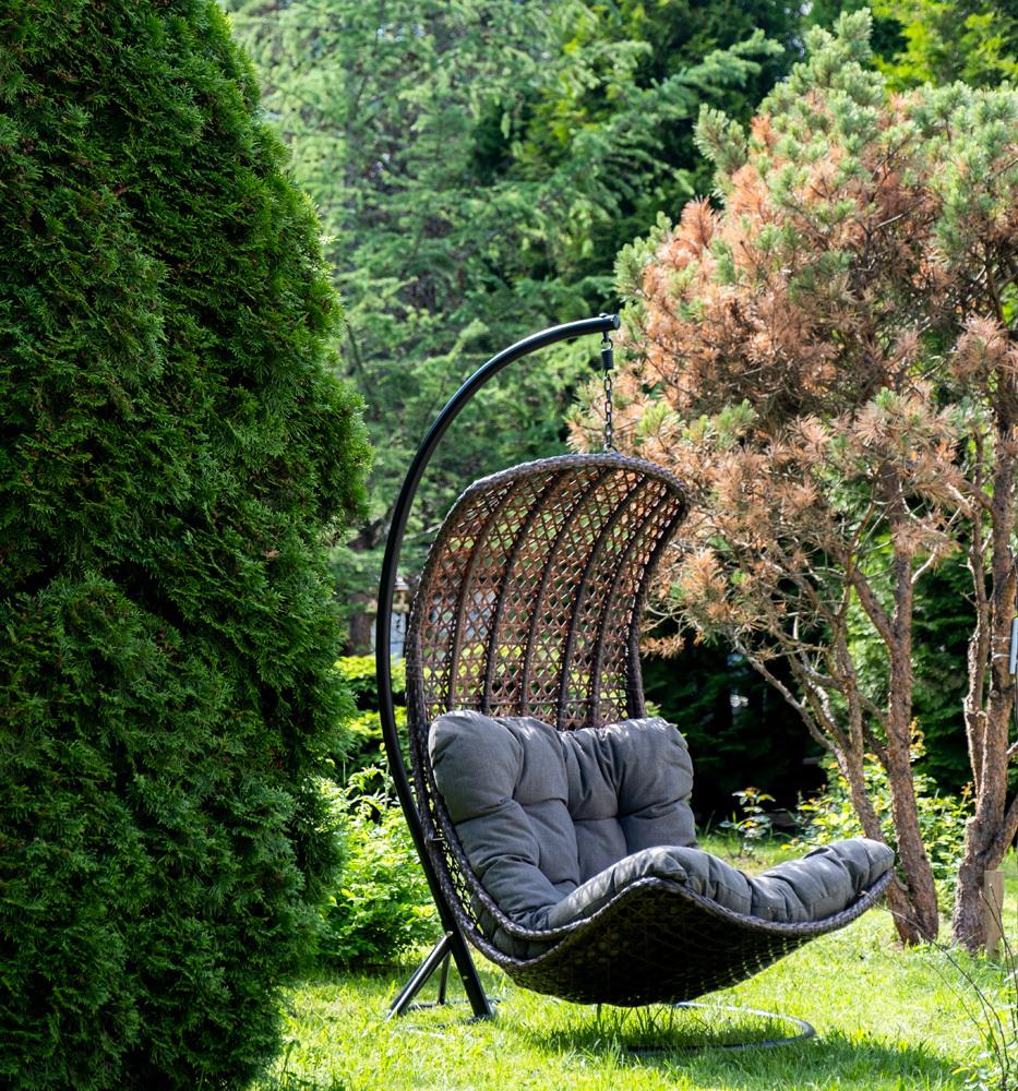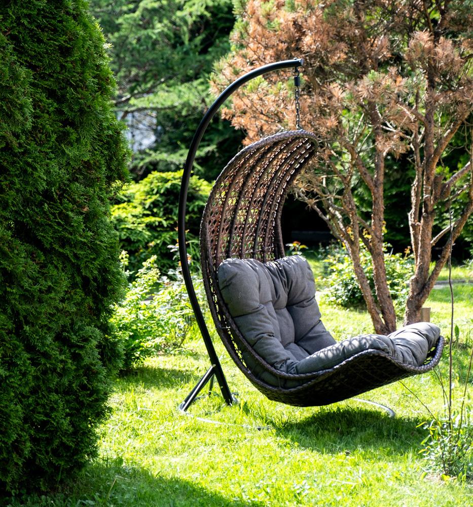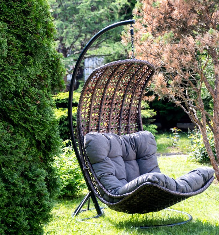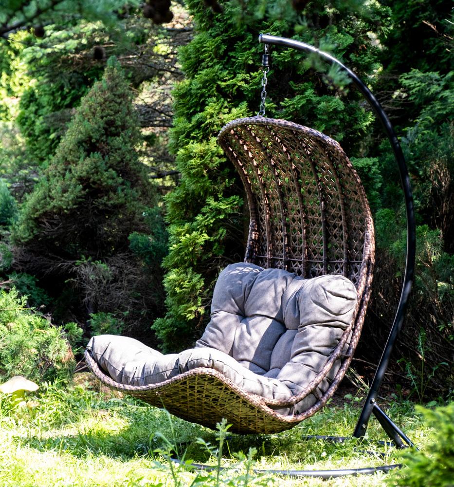Уютное садовое кресло-кокон «Виши» для организации лаунж-зоны. Основание изготовлено из стали окрашенного порошковой износостойкой краской черного оттенка, вручную оплетенного плоским искусственным ротангом коричневого цвета. Этот материал не боится перепадов температуры, прямых солнечных лучей, дождя и ветра. Для удобства сидения на кресле предусмотрена удлиненная подушка серо-коричневого цвета из полиэстера с влагоотталкивающей пропиткой. Чехол – съемный, допускается стирать в стиральной