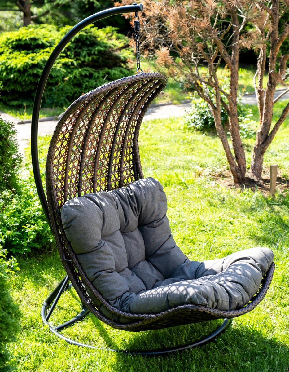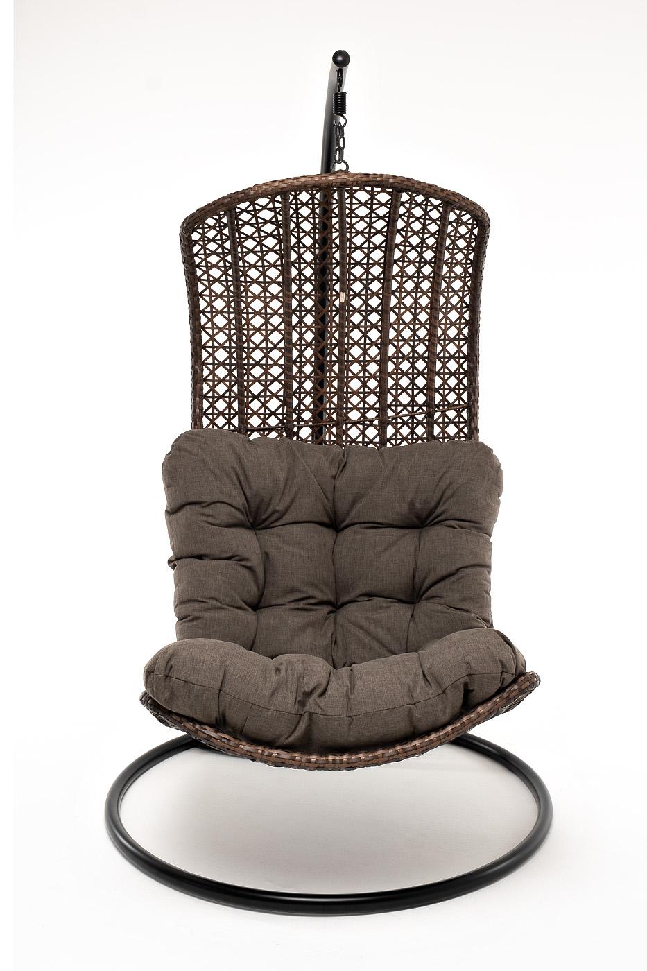 Кресло подвесное 4SIS "Виши" подвесное кресло-кокон из искусственного ротанга, цвет коричневый с серо-коричневой подушкой арт. YH-L23702W brown