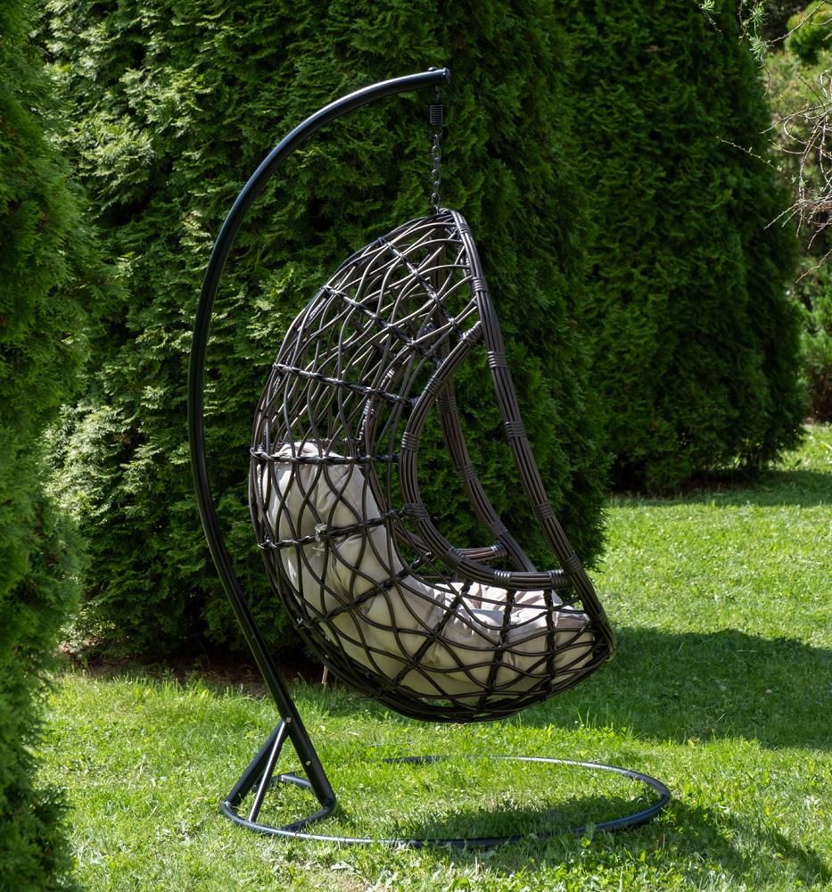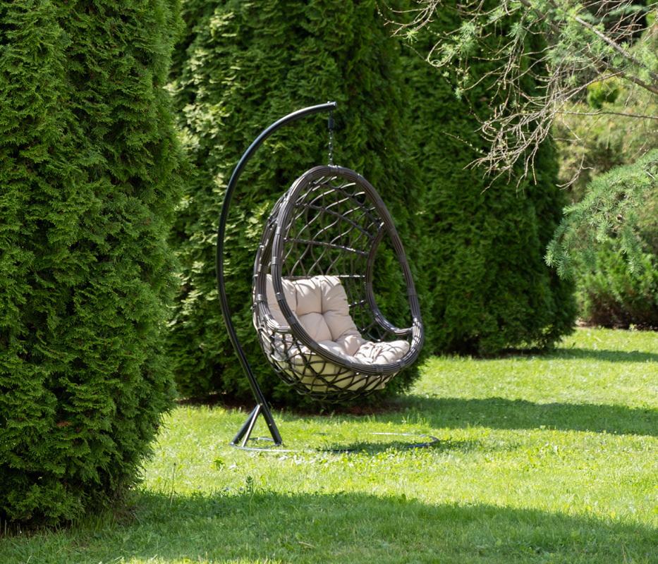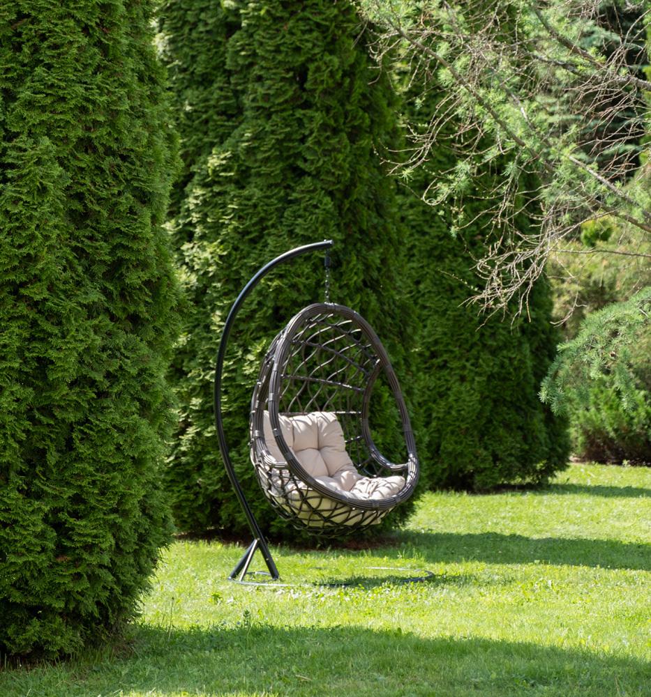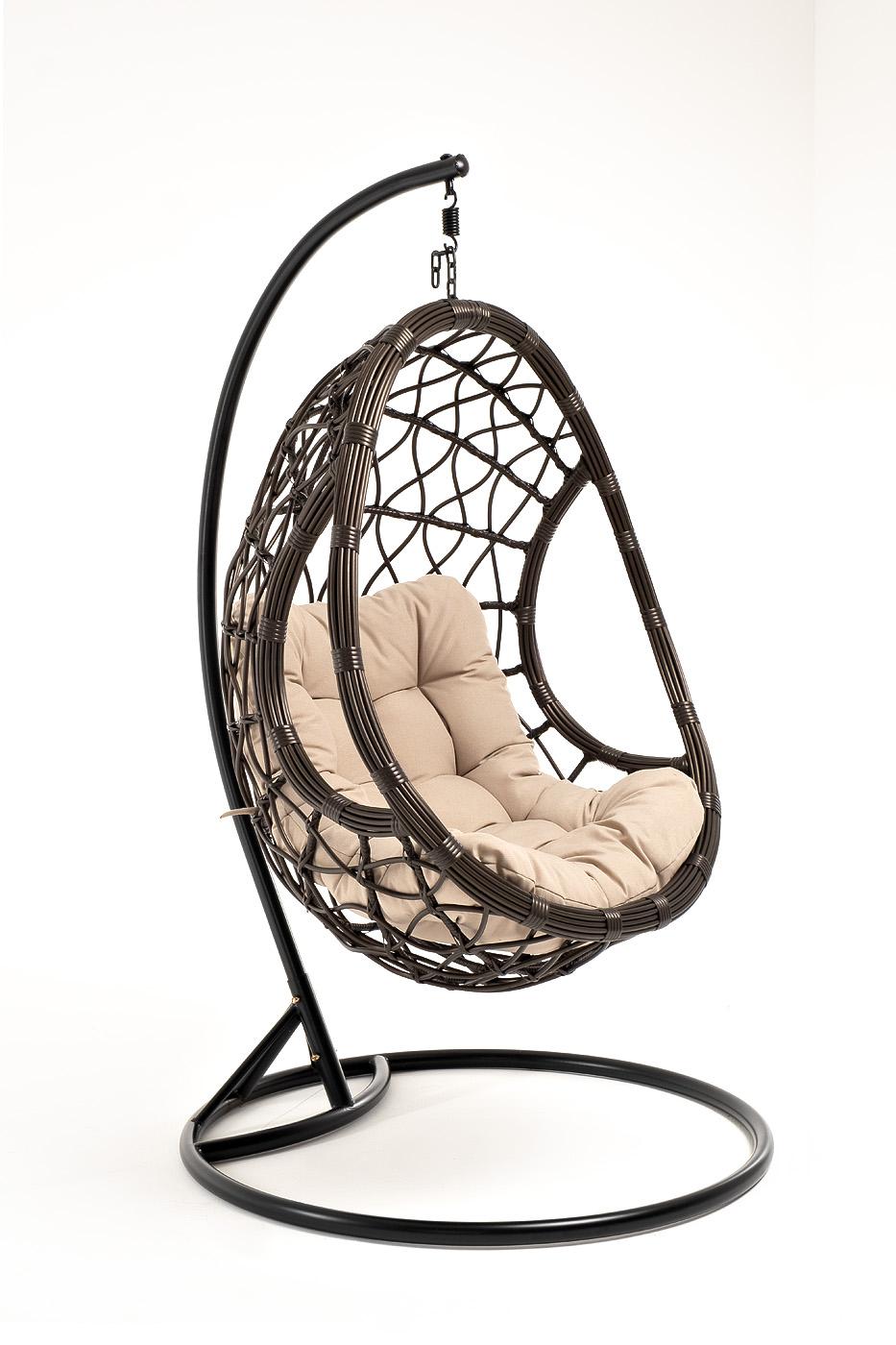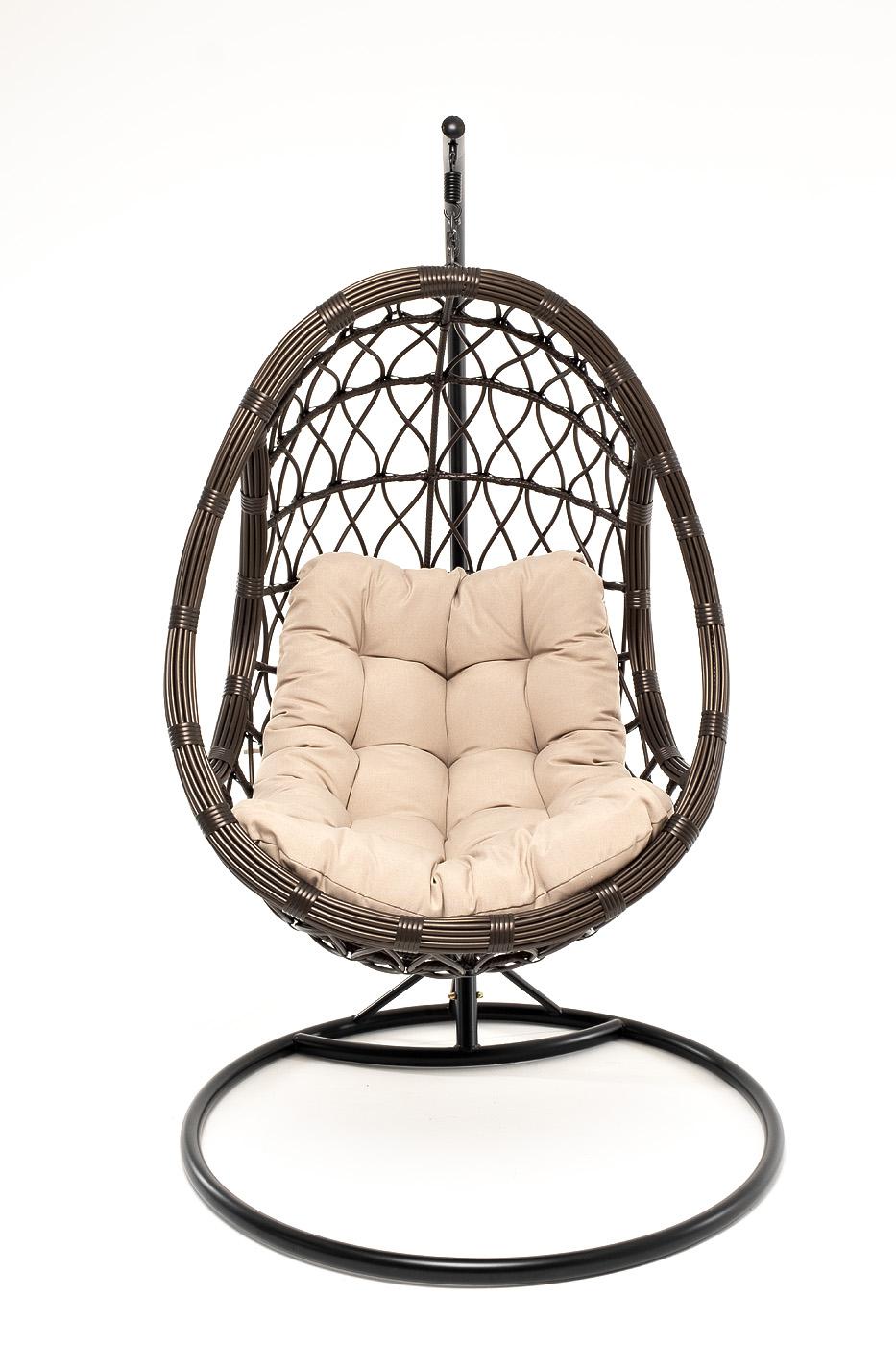 Кресло подвесное 4SIS "Венеция" подвесное кресло-кокон из искусственного ротанга, цвет бронзовый с бежевой подушкой арт. YH-L23703W Bronze