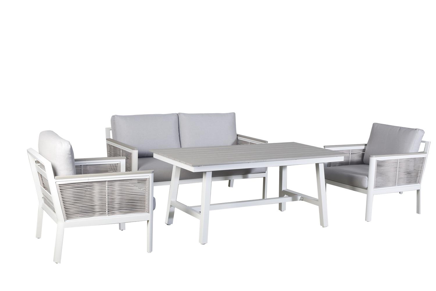 «Сан Ремо» лаунж-зона, алюминиевый каркас белого цвета, вручную оплетенный роупом серо-коричневого цвета. В состав комплекта входит: - двухместный диван 1460×780×700 мм. - два кресла 680×780×700 мм. - стол обеденный 1500×800×650 мм. Диван и кресла оснащены подушками бежевого цвета со съёмными чехлами. Стол со столешницей из ДПК. "Сан Ремо" диван 2-местный плетеный из роупа, каркас алюминий белый, роуп бежевый, ткань бежевая 1шт. 1 460Х780Х700, "Сан Ремо" стол обеденный из ДПК, каркас алюминиевый 1шт. 1 500Х800Х650, "Сан Ремо" кресло плетеное из роупа садовое, каркас алюминий белый, роуп бежевый, ткань бежевая 2шт. 680Х780Х700,
