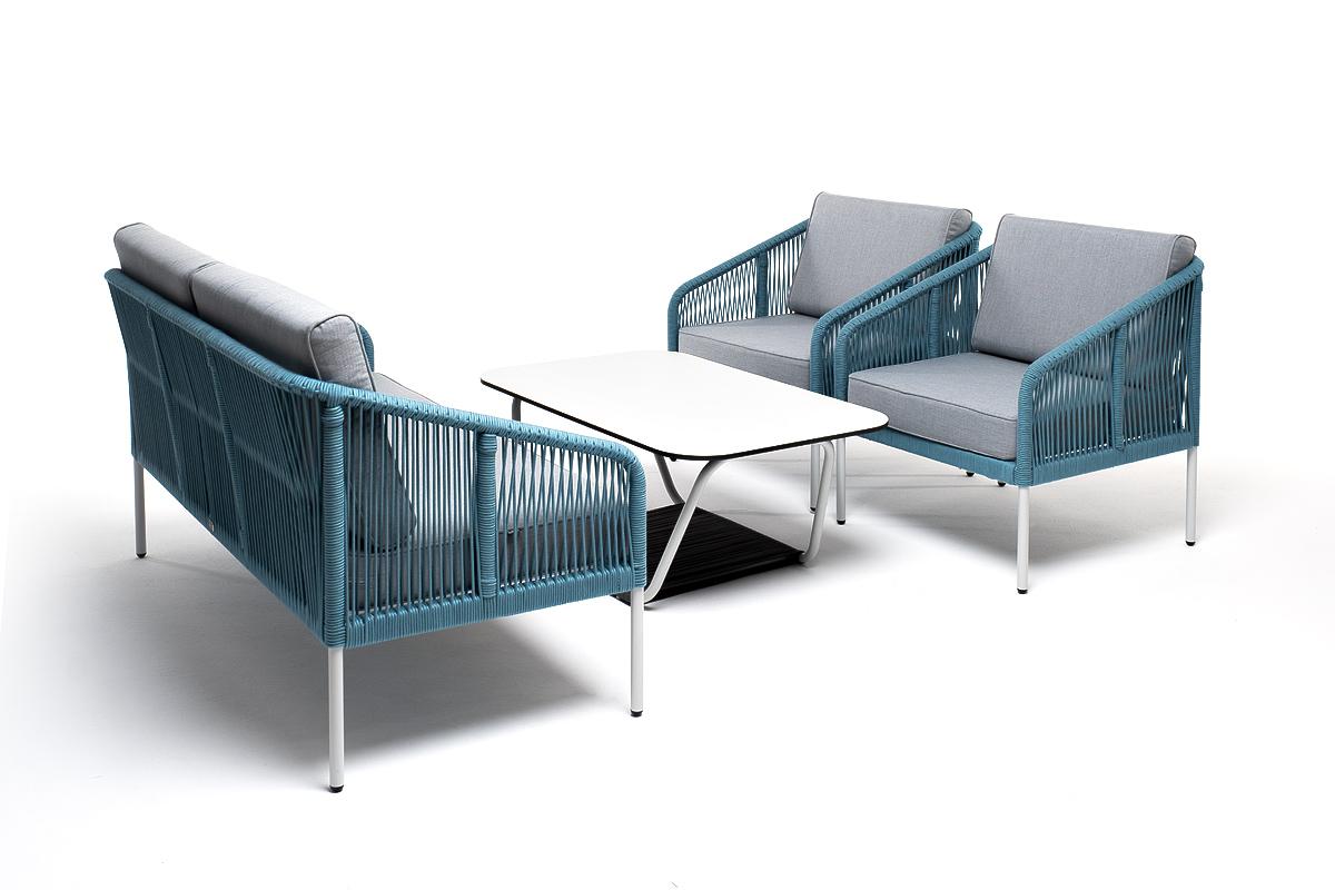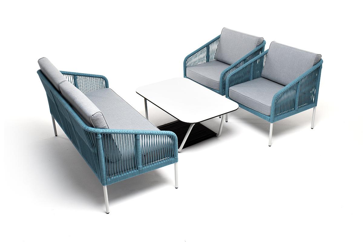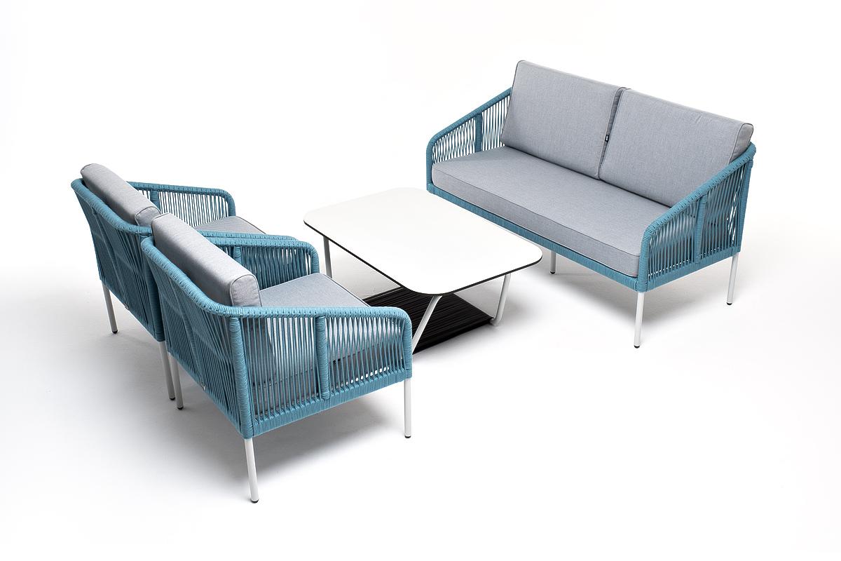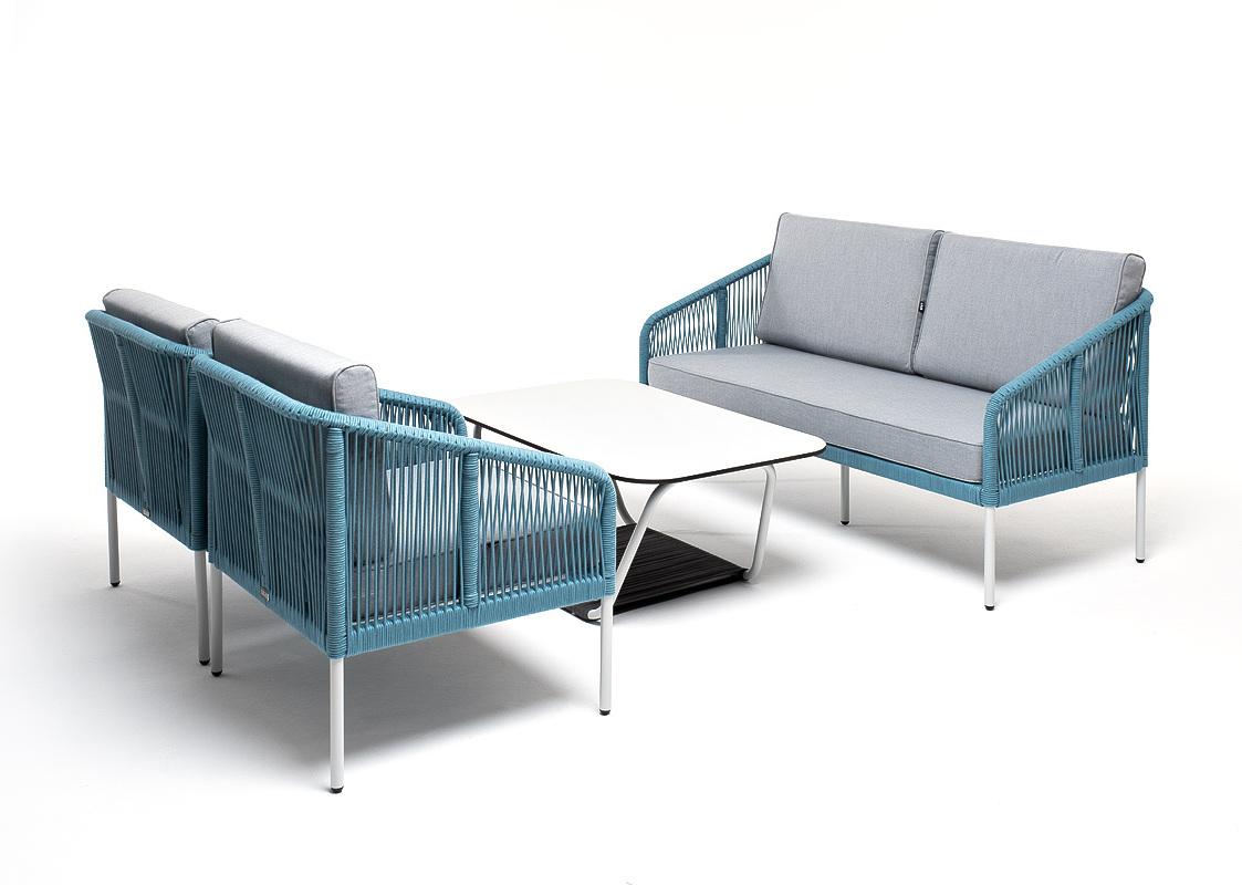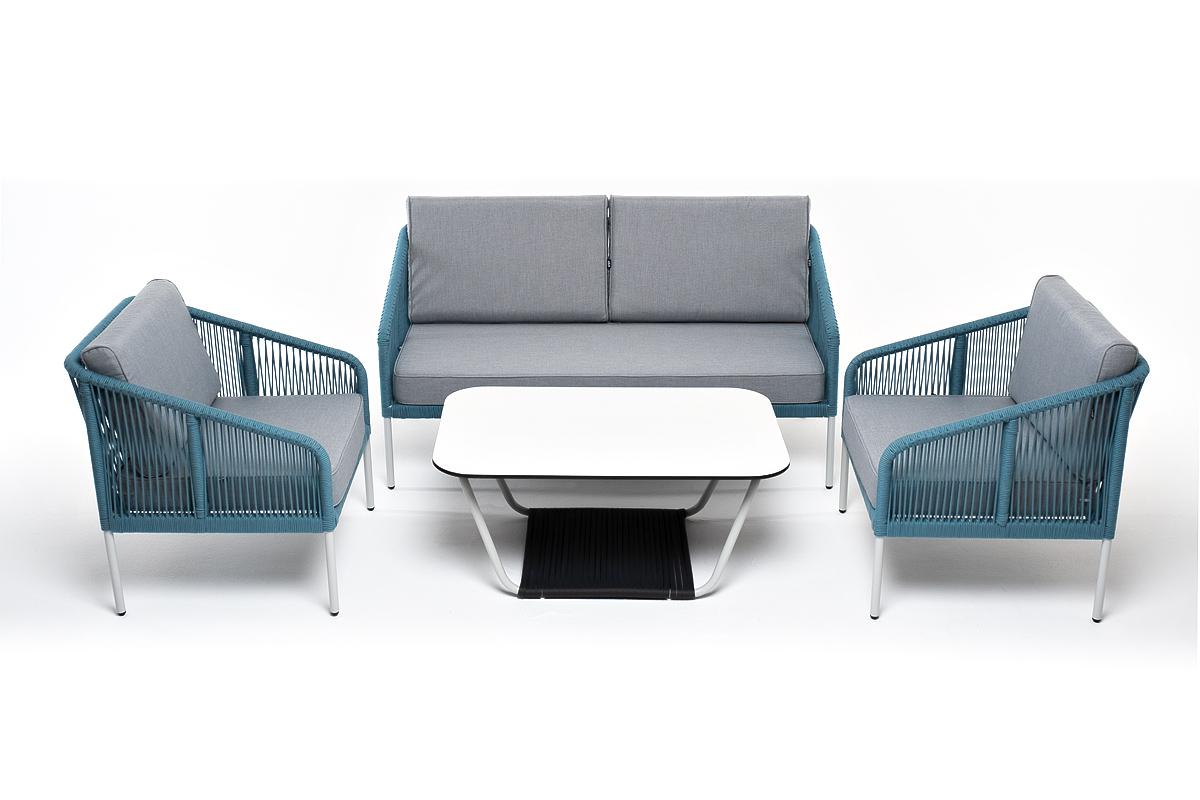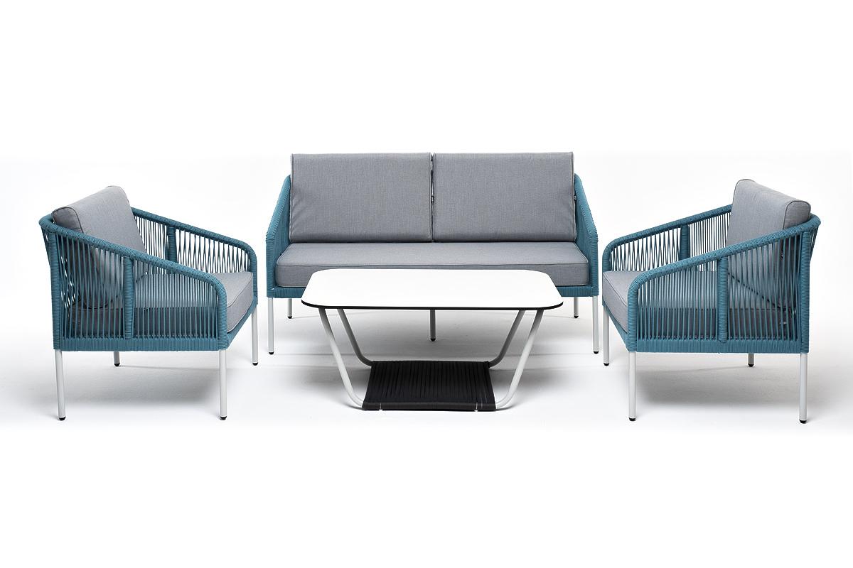 Лаунж зона 4SIS "Канны" лаунж-зона 4-местная из роупа со столом "Гранада" (молочный), каркас алюминиевый светло-серый, роуп бирюзовый арт. KANS2C2TJ-4-RC658-SET blue