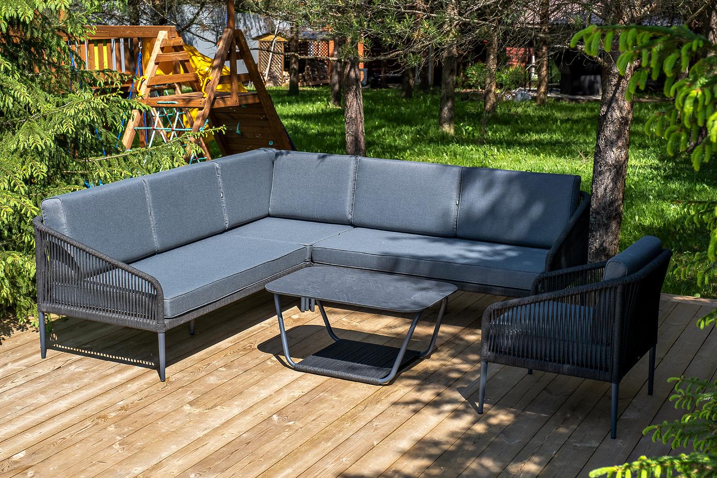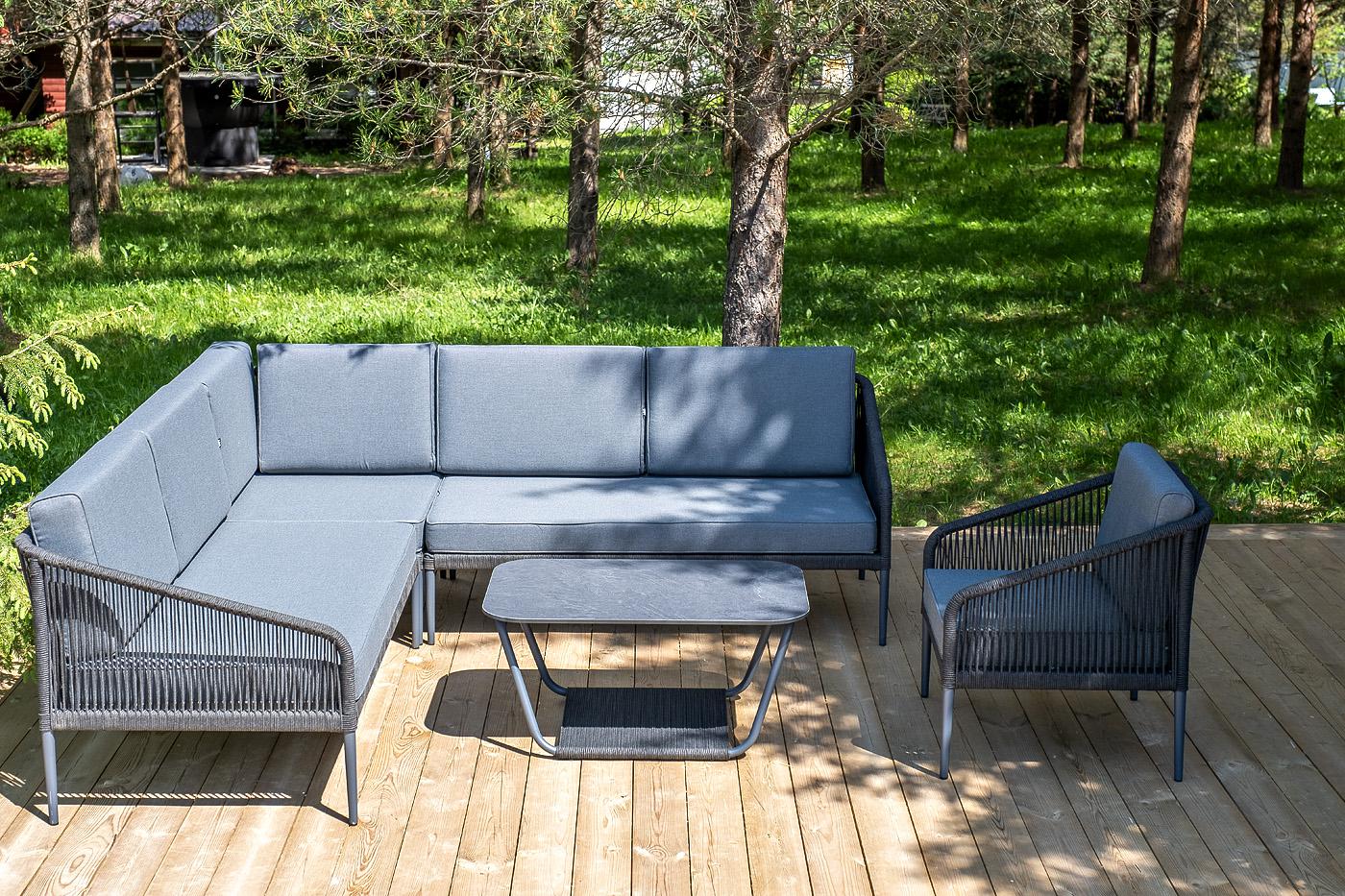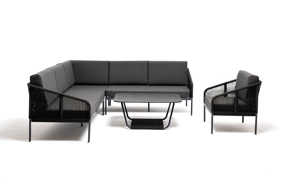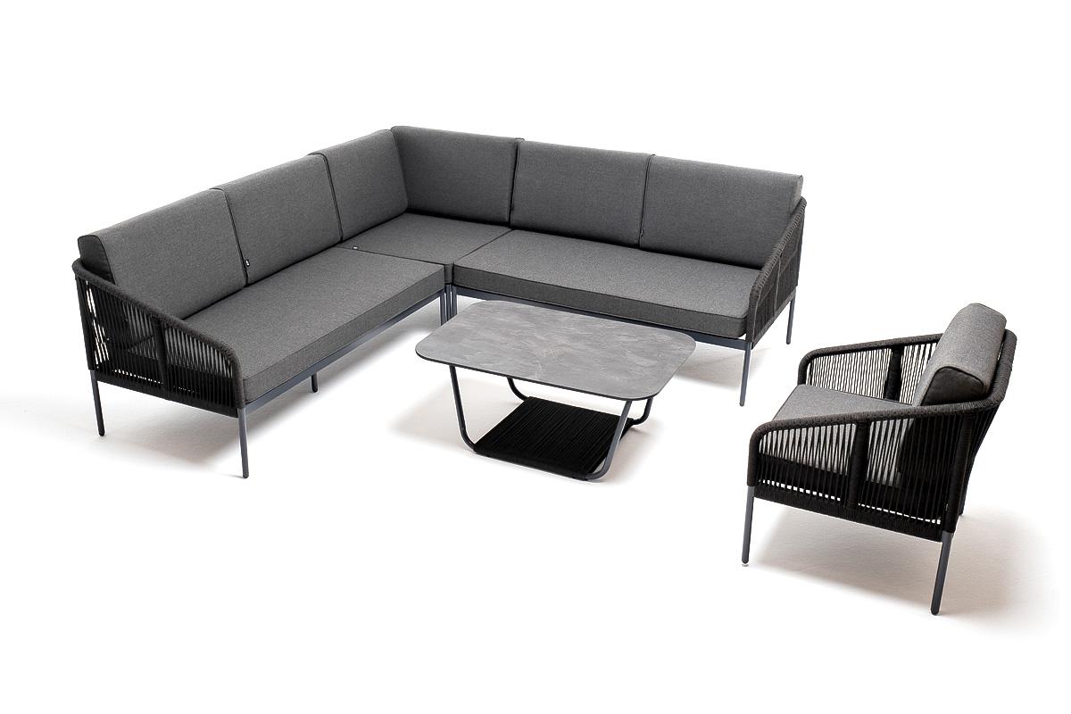 Лаунж зона 4SIS "Канны" модульная угловая лаунж-зона из роупа (веревки), цвет темно-серый арт. KAN-S5C1T1-5-SET D-gray