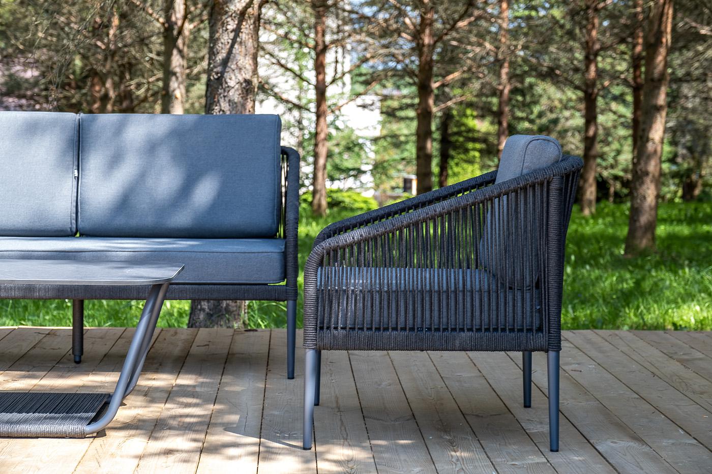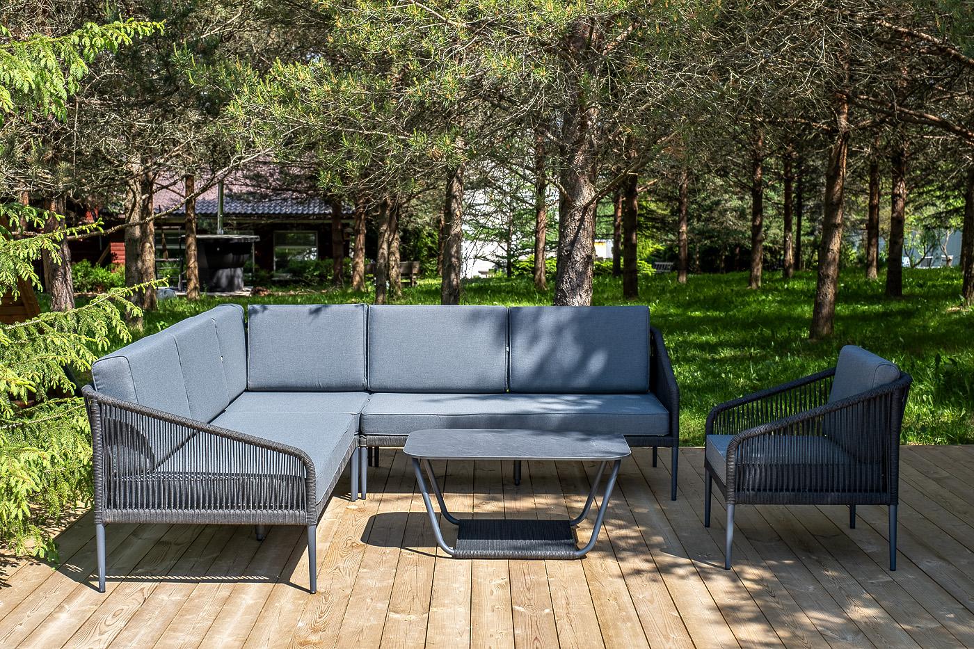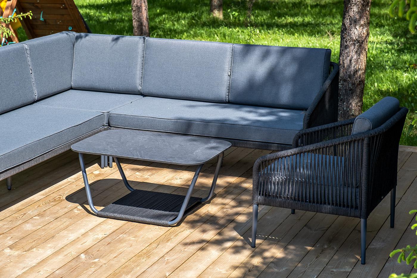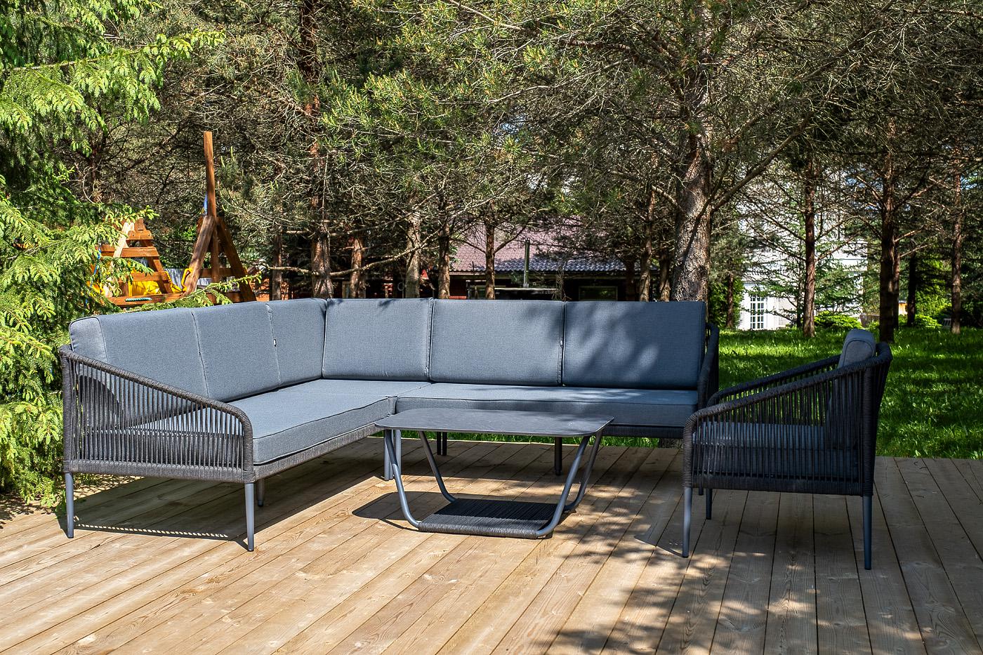 Лаунж зона 4SIS "Канны" модульная угловая лаунж-зона из роупа (веревки), цвет темно-серый арт. KAN-S5C1T1-5-SET D-gray
