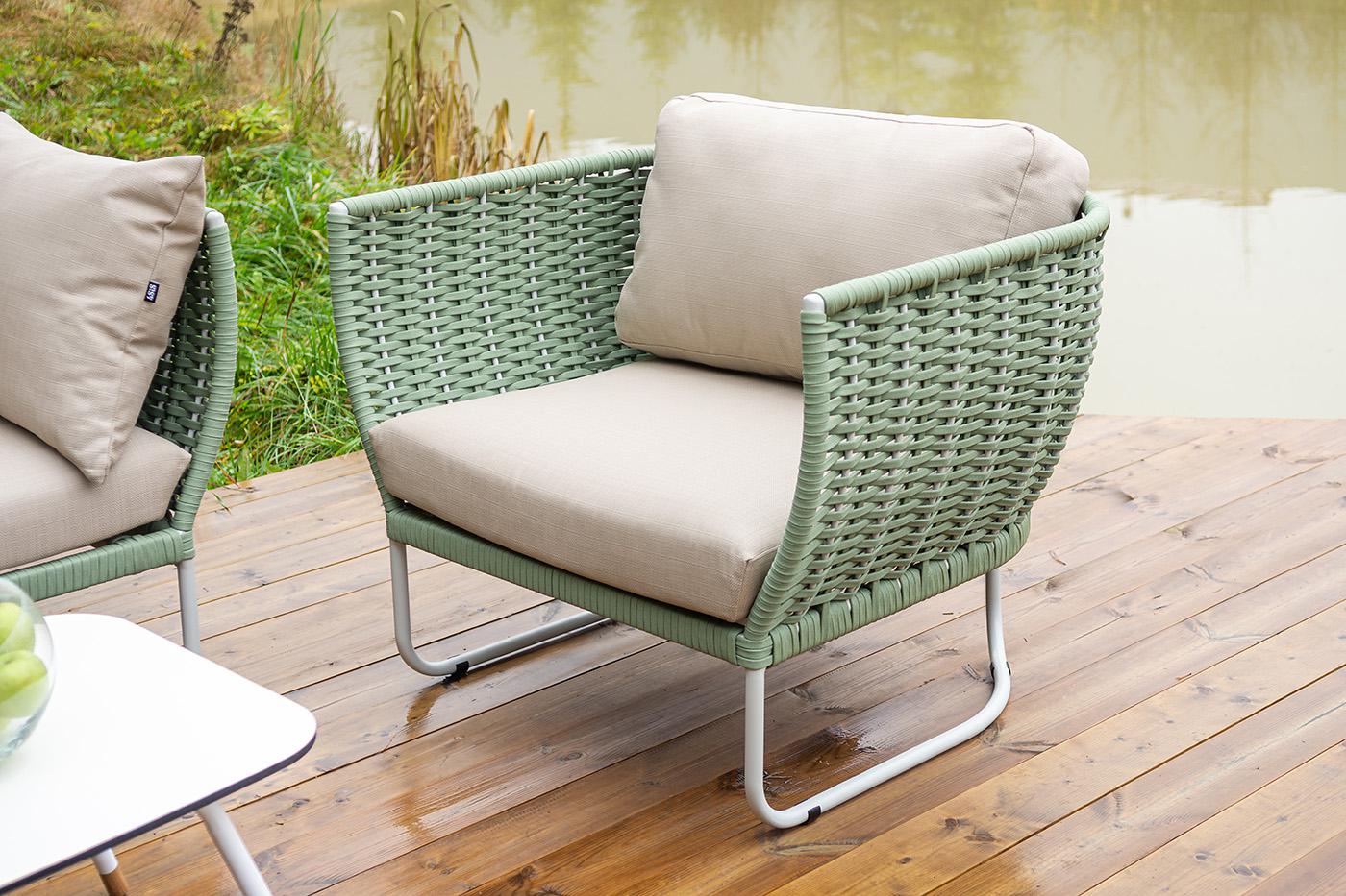 Лаунж зона 4SIS "Фиджи" лаунж-зона 5-местная плетеная из роупа (веревки), каркас алюминиевый светло-серый, роуп зеленый (4204) арт. FIDS3C2T-4-SET T-green