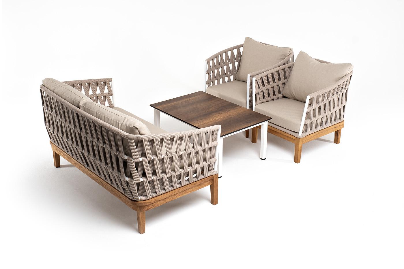Лаунж зона 4SIS "Диего" лаунж-зона 4-местная плетеная из роупа со столиком "Канны" цвета "дуб", основание дуб, роуп бежевый арт. DIES2C2TJ-4-OAK-SET biege