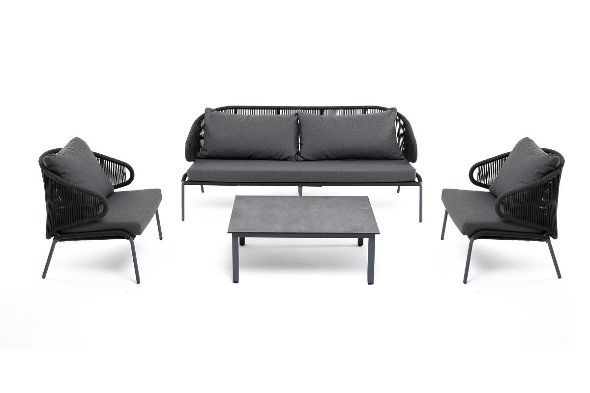 Лаунж зона 4SIS "Милан" лаунж-зона 5-местная плетеная из роупа (веревки), каркас алюминиевый серый, роуп темно-серый арт. MILS3C2TJ-4-SET D-gray