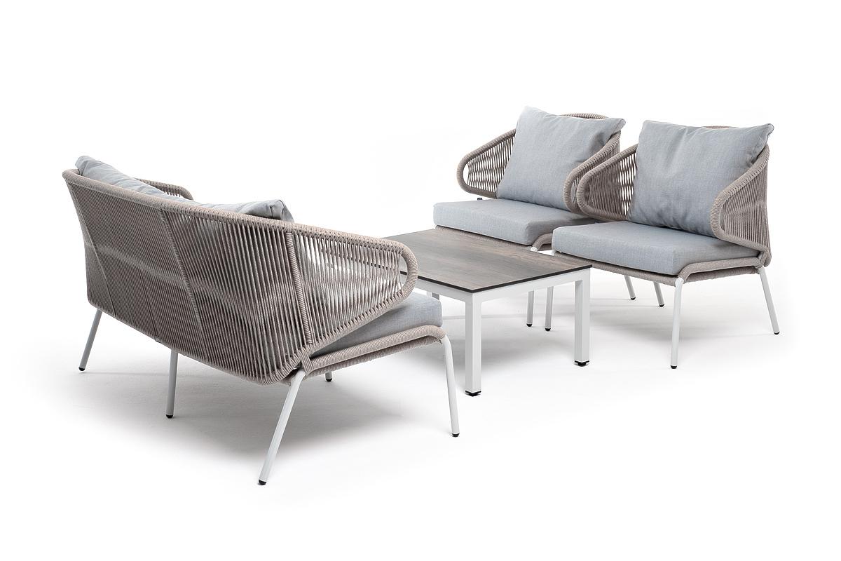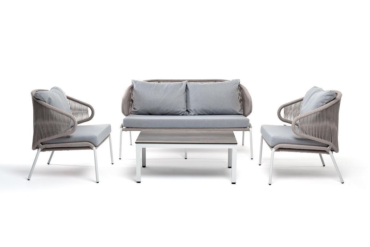 Лаунж зона 4SIS "Милан" лаунж-зона 4-местная плетеная из роупа (веревки), каркас алюминиевый белый, роуп бежевый арт. MILS2C2TJ-4-SET mel-grey