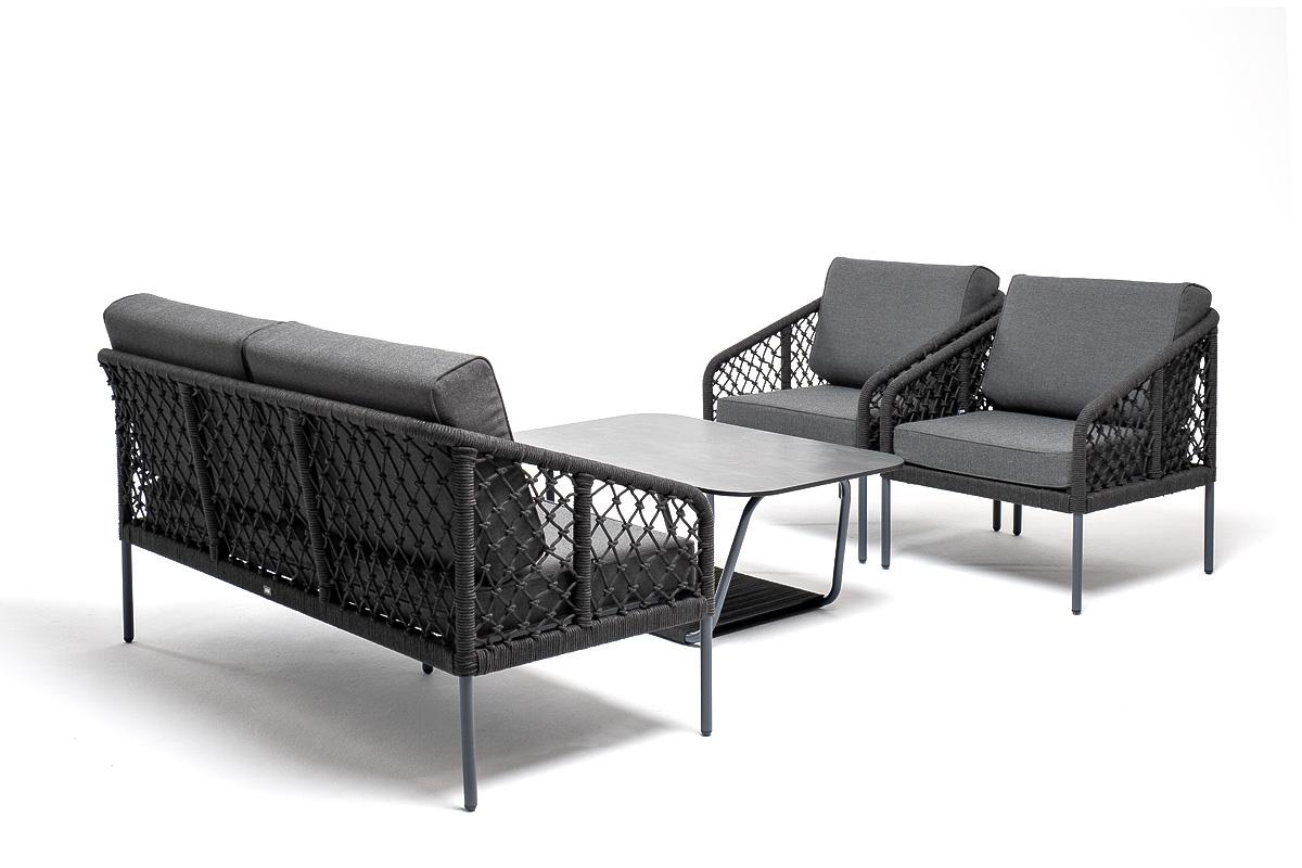 Лаунж зона 4SIS "Канны" лаунж-зона 4-местная из роупа узелкового плетения, каркас алюминий, роуп темно-серый арт. KANS2C2TDK-4-SET D-gray