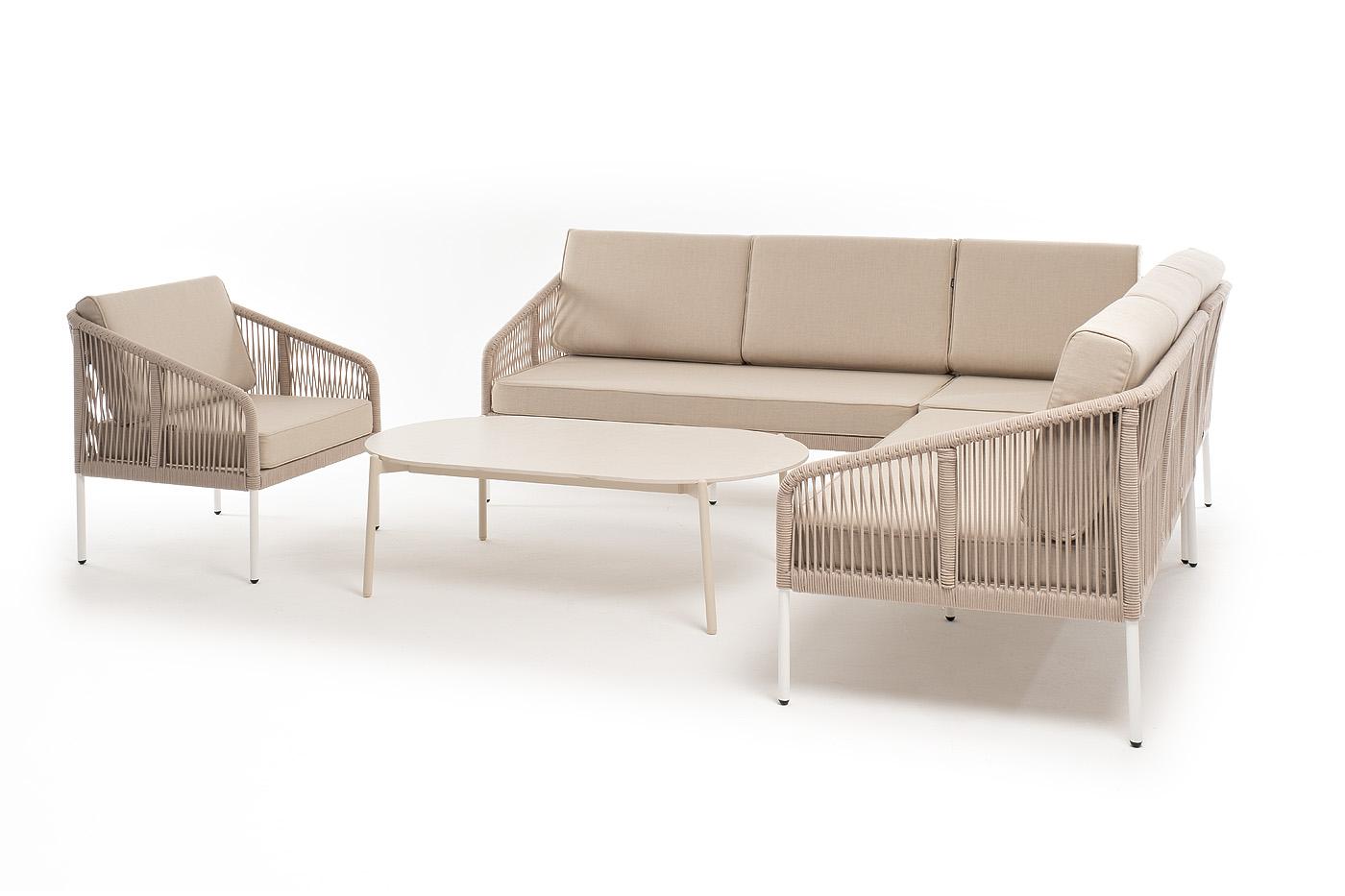 Лаунж зона 4SIS "Канны" модульная угловая лаунж-зона из роупа (веревки) со столом "Диего" (молочный), цвет бежевый арт. KAN-S5C1T1-5-WHITE-SET biege