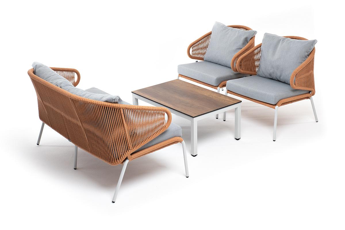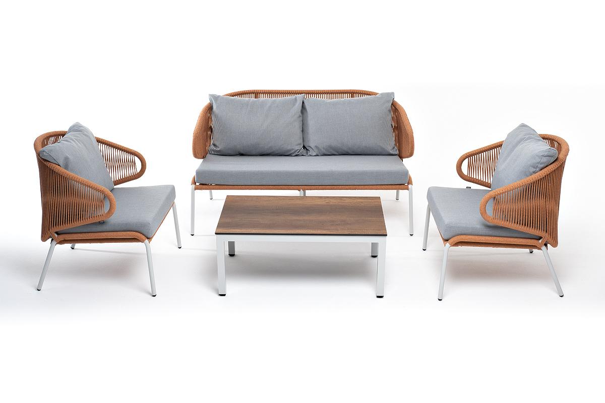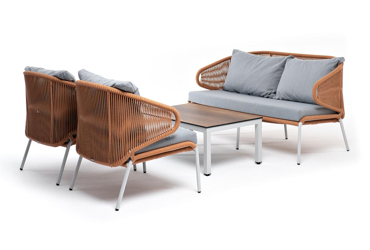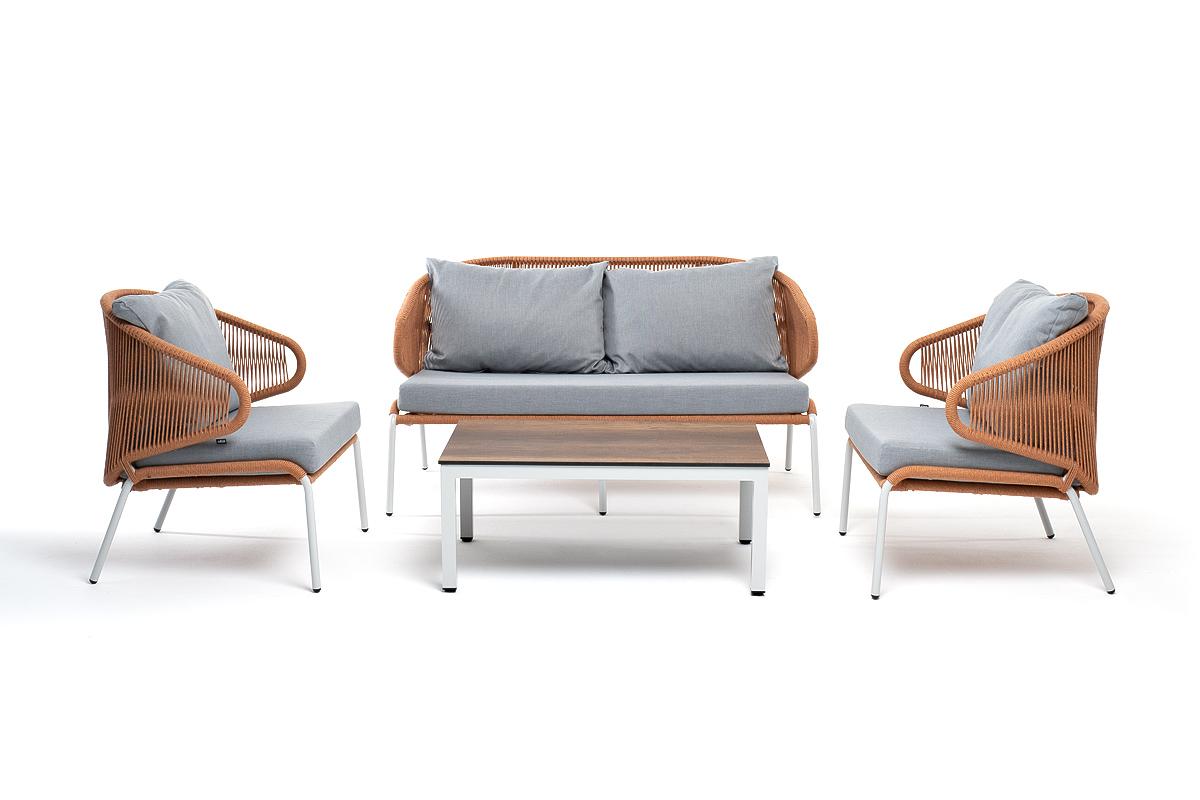 Лаунж зона 4SIS "Милан" лаунж-зона 4-местная плетеная из роупа (веревки), каркас алюминиевый светло-серый, роуп оранжевый меланж арт. MILS2C2TJ-4-SET mel-orange