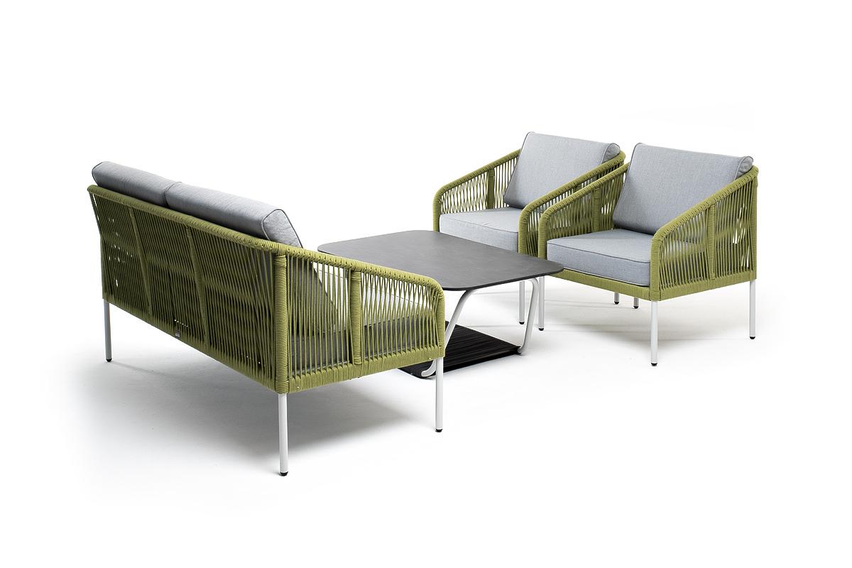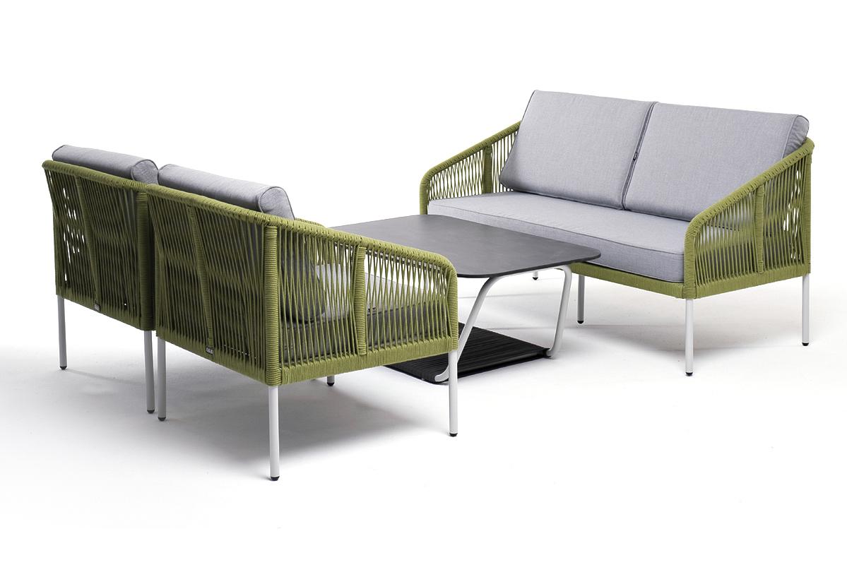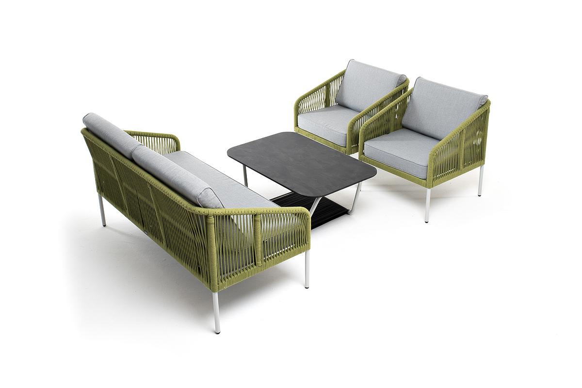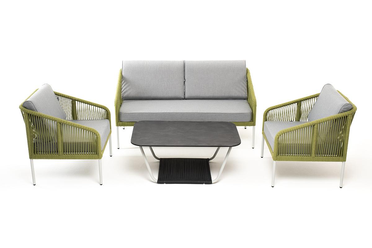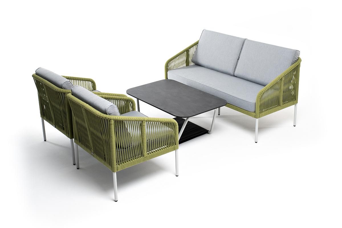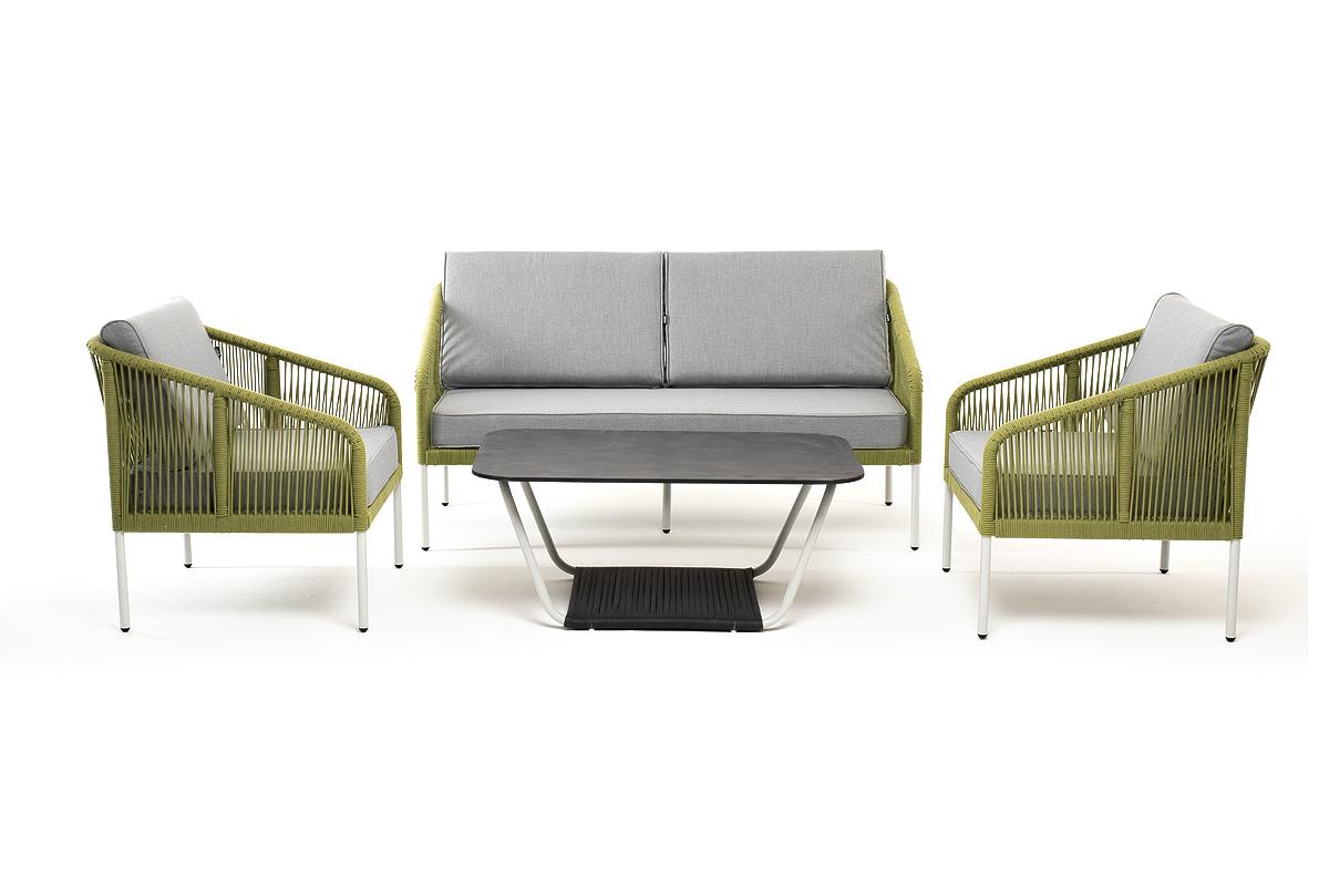 Лаунж зона 4SIS "Канны" лаунж-зона 4-местная из роупа со столом "Глория" (серый гранит), каркас алюминиевый светло-серый, роуп салатовый меланж арт. KANS2C2TJ-4-A23295-SET mel-green
