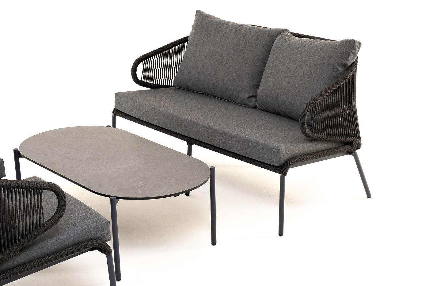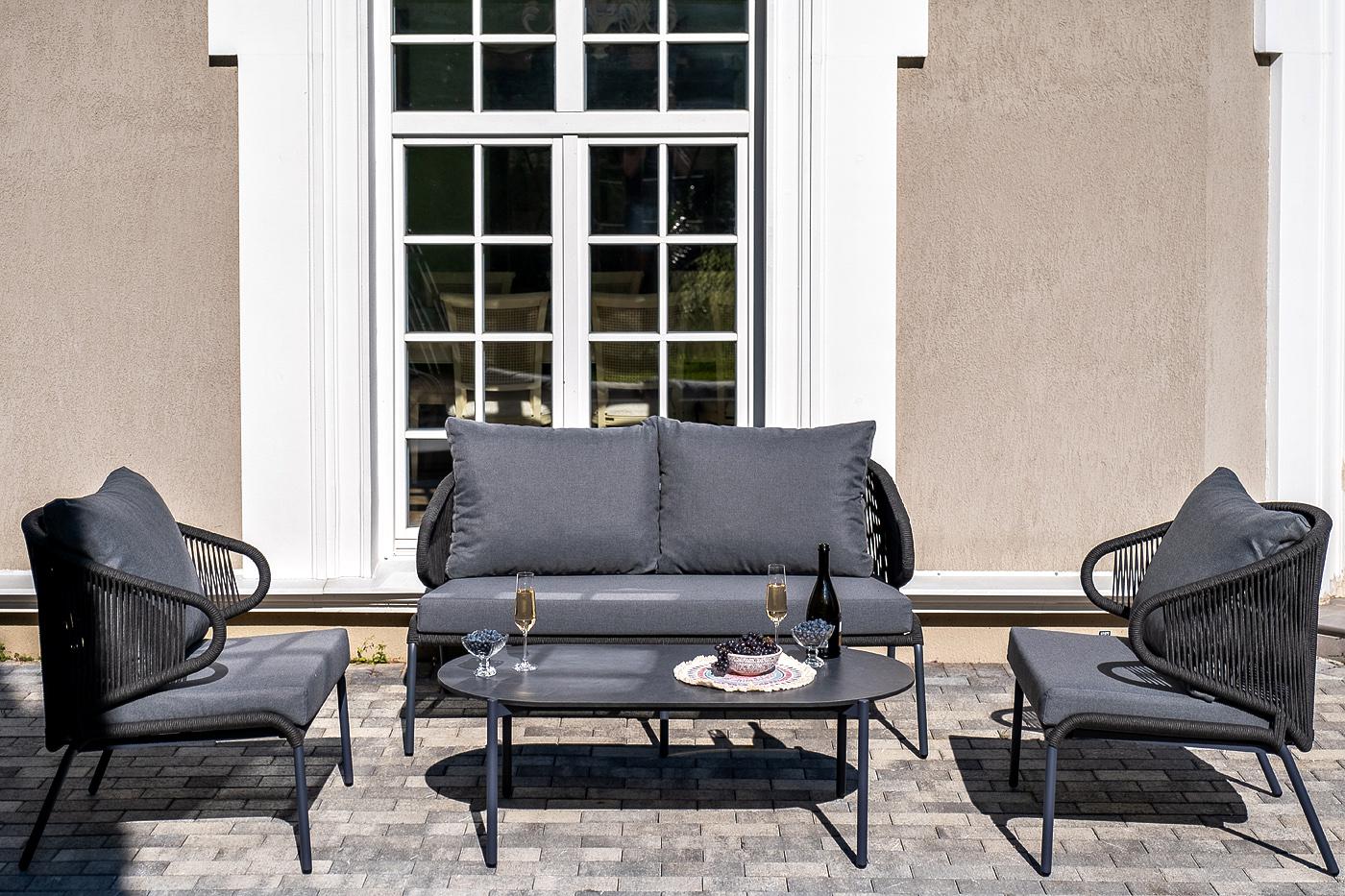 Лаунж зона 4SIS "Милан" лаунж-зона 4-местная плетеная из роупа (веревки), каркас алюминиевый темно-серый, роуп темно-серый арт. MILS2C2TJ-4-SET D-gray