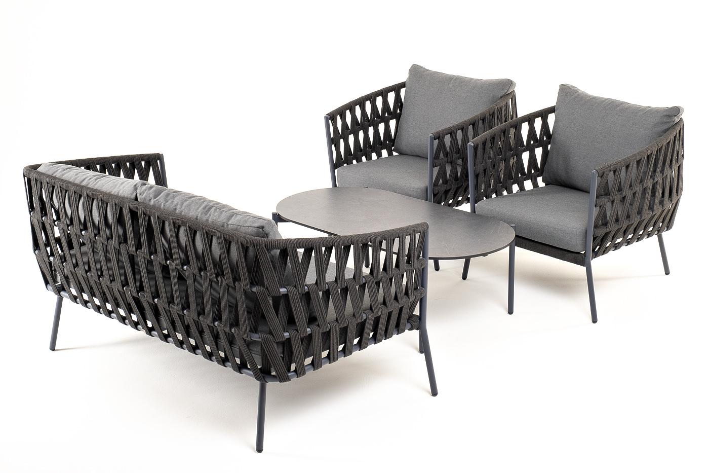 Лаунж зона 4SIS "Диего" лаунж-зона 4-местная плетеная из роупа (веревки), каркас алюминиевый темно-серый, роуп темно-серый арт. DIES2C2TJ-4-SET D-gray