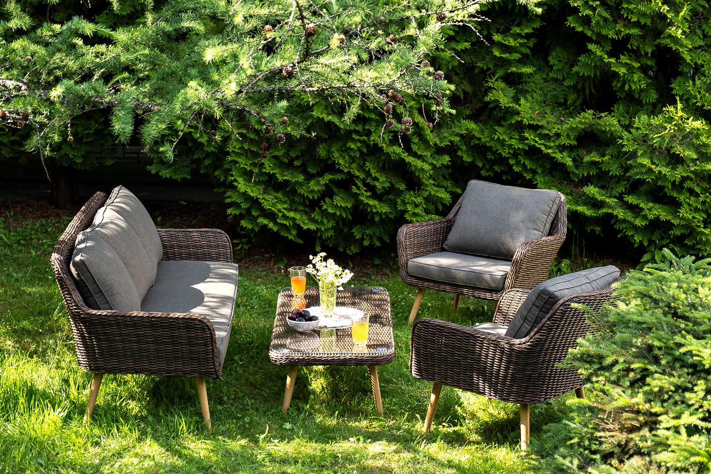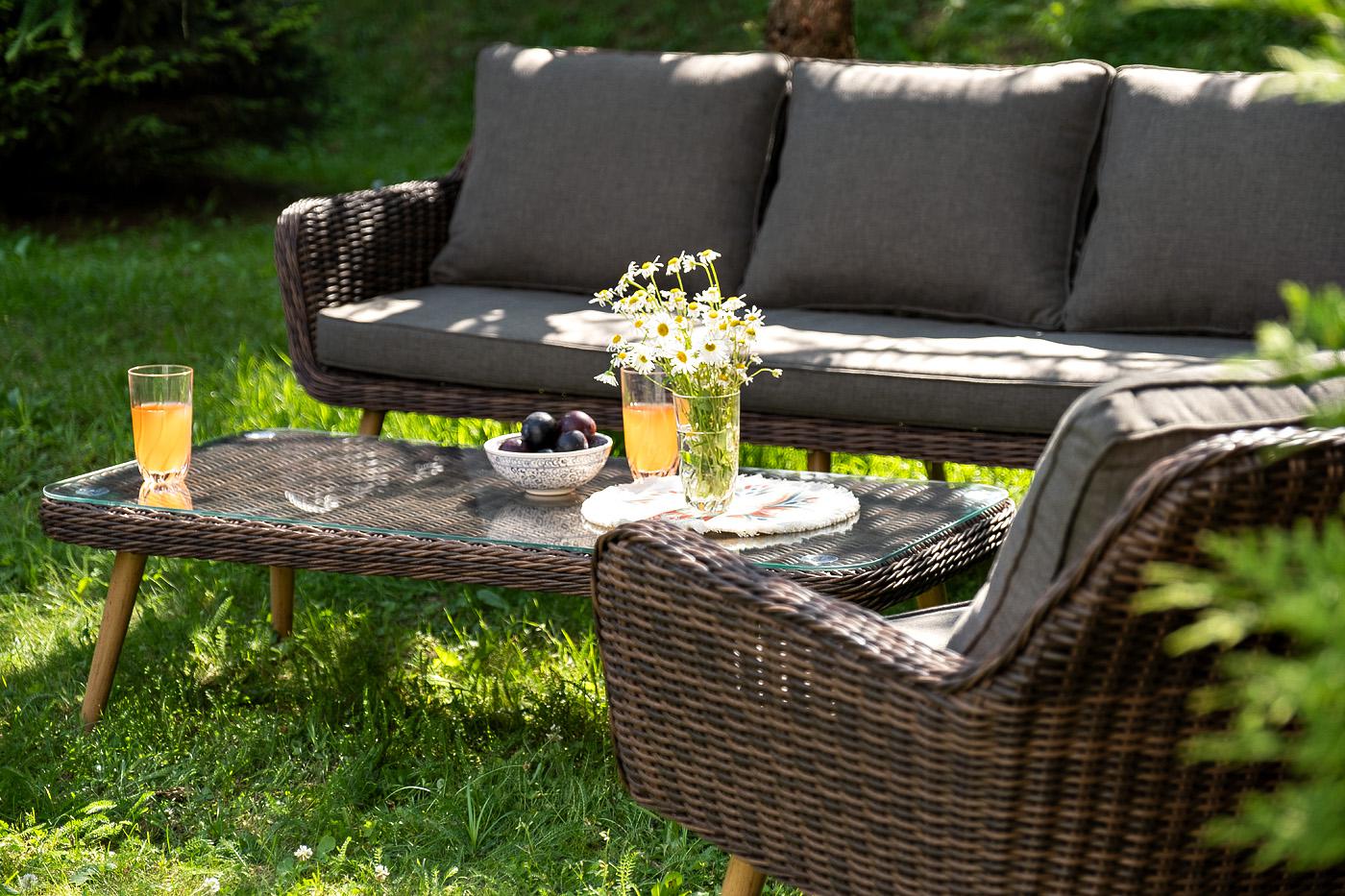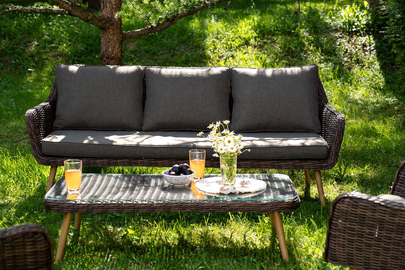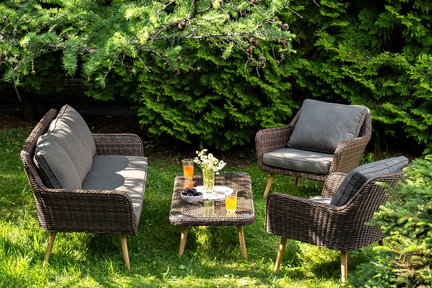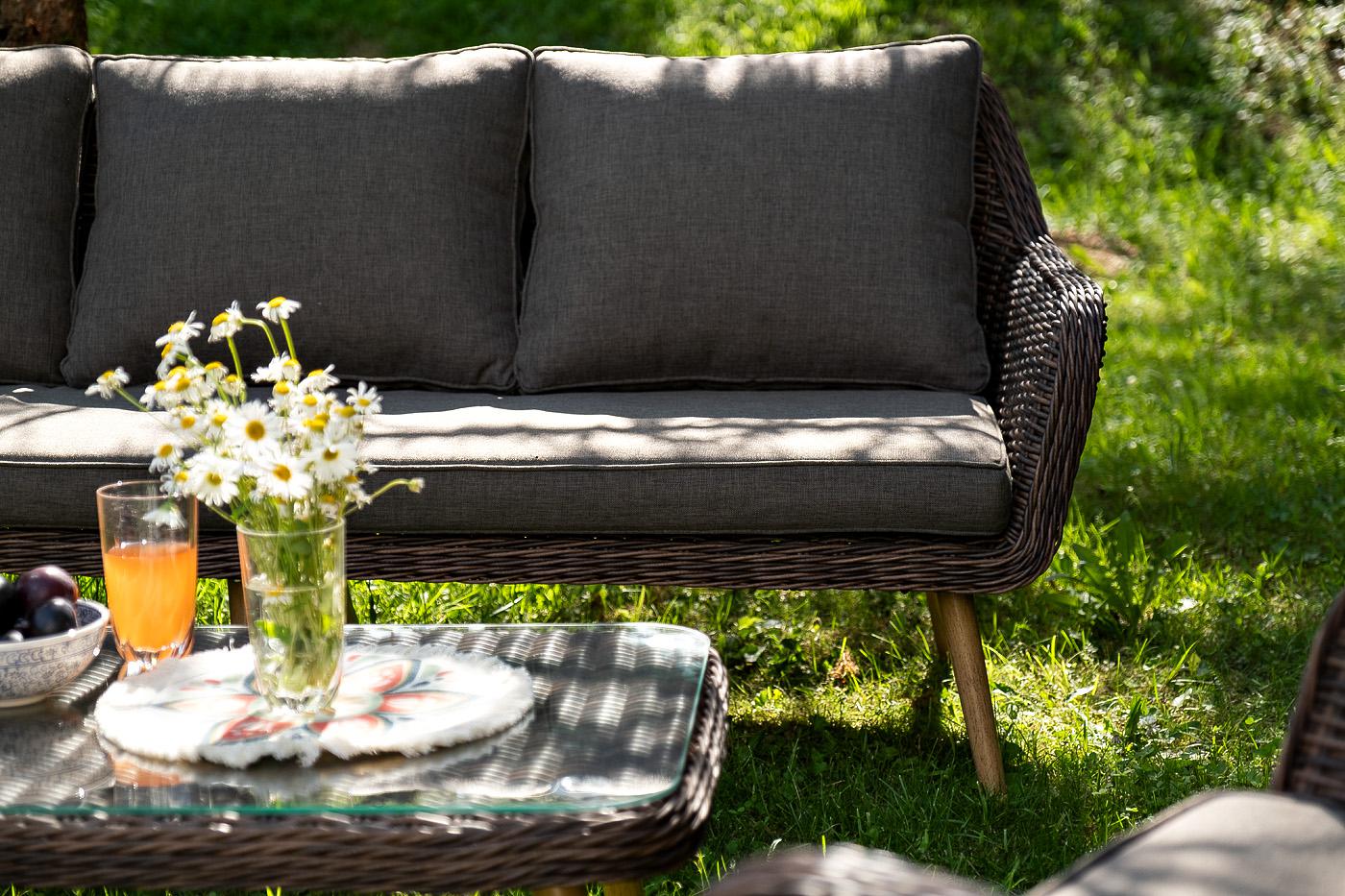 Лаунж-зона «Прованс» – это идеальный вариант оформления зоны отдыха на свежем воздухе. Рассчитана на компанию до 5 персон. Садовый комплект состоит из: - трехместного дивана, размером – 1900×800×770 мм. - двух кресел – 810×800×770 мм. - журнального столика – 1200×580×330 мм. Каркас всей группы выполнен из прочного алюминия, который оплетен круглым искусственным ротангом. Цвет – коричневый. Диван и кресла оснащены подушками со съёмными чехлами серого цвета. При изготовлении чехлов исп "Прованс" диван из искусственного ротанга трехместный, цвет коричневый 1шт. 1 900Х800Х770, "Прованс" кресло из искусственного ротанга, цвет коричневый 2шт. 810Х800Х770, "Прованс" столик журнальный из ротанга, цвет коричневый 1шт. 1 200Х580Х330,