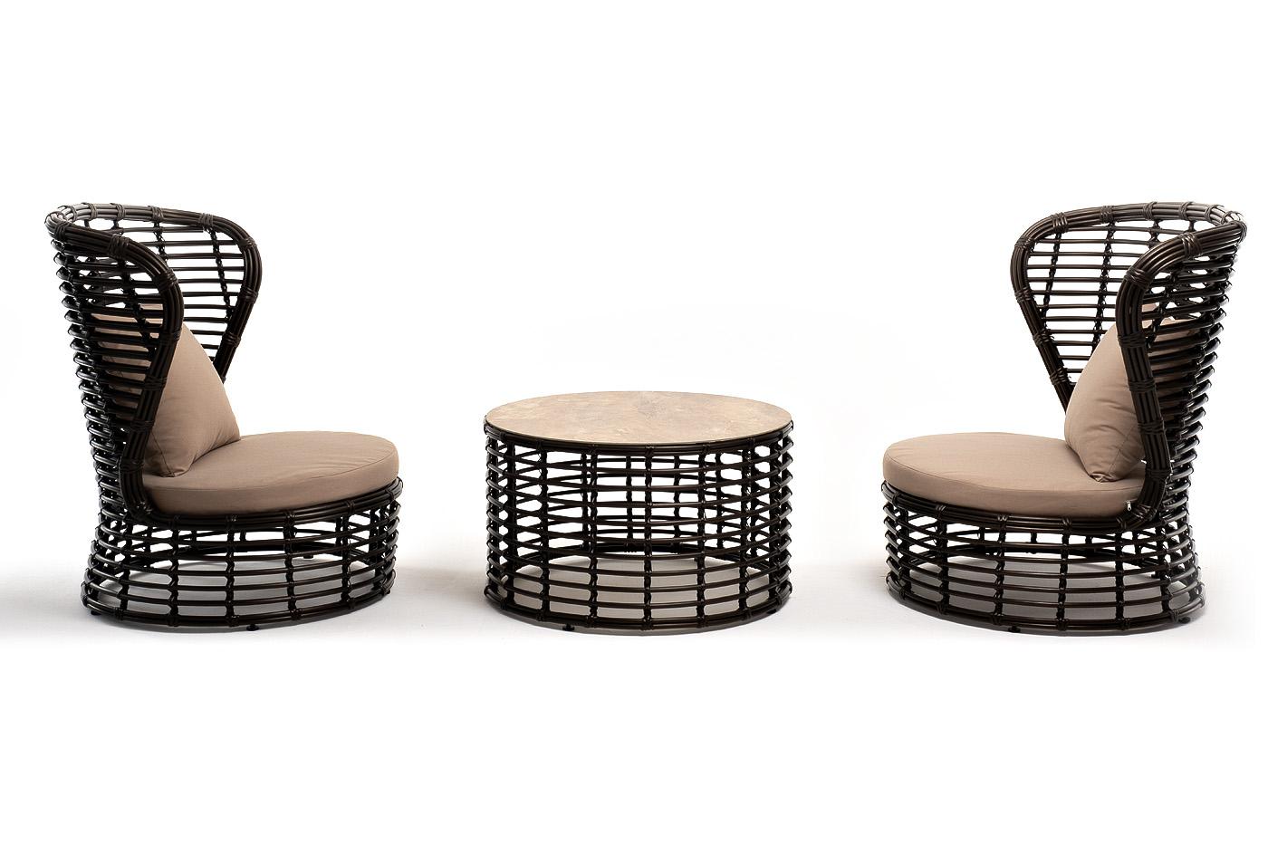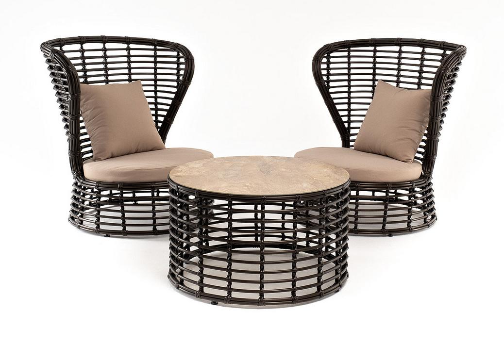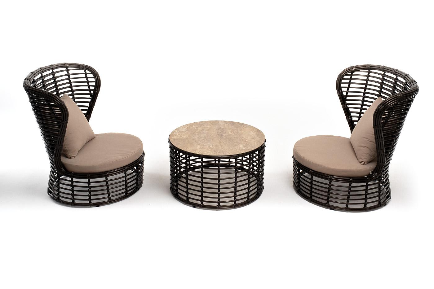 Лаунж зона 4SIS "Парма" кофейный комплект из искусственного ротанга, цвет бронзовый арт. PAC2T1-3-SET